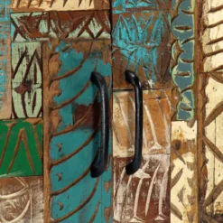 Buffet Sculpté à La Main 60x30x75cm Bois De Récupération Massif