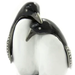 Coffret Ă Bijoux ‘Couple Pingouins’ Noir Blanc Orange – [L9212]
