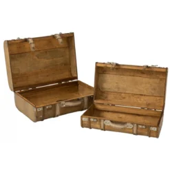 Set De 2 Valise Arrondie Bois Beige – L 45,5 X L 33 X H 18,5 Cm
