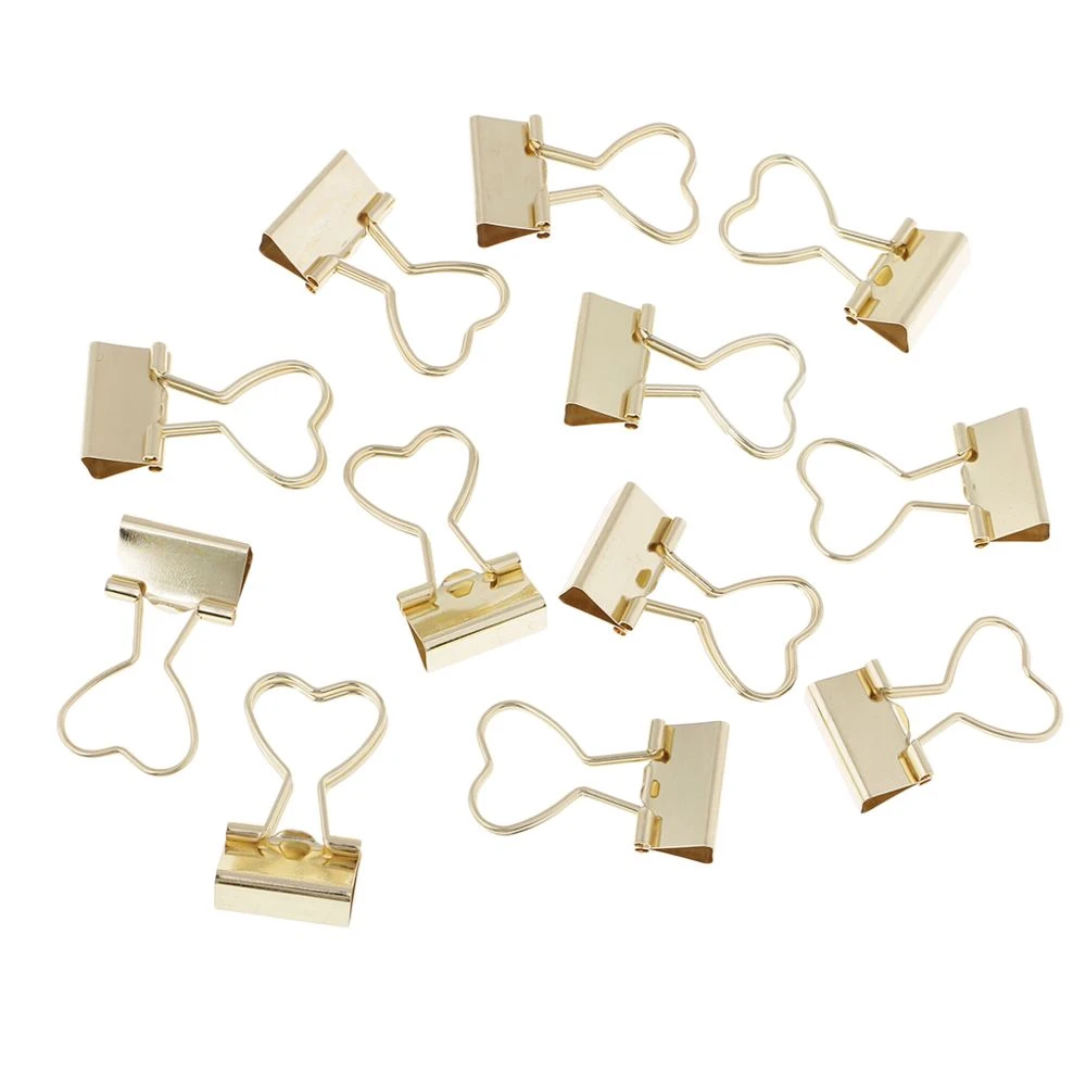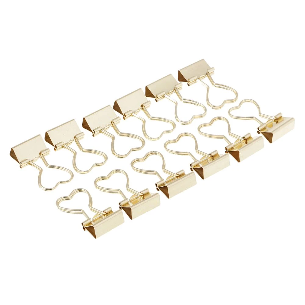 Points forts marque generique 12 Pièces Métal Foldback Binder Clips École Bureau Papier Clips Or