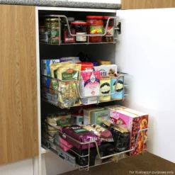 Ces paniers métalliques coulissants KuKoo vous aidera à maximiser au maximum l’espace de rangement de votre cuisine et vous aidera à atteindre ces choses essentiels enfouit tout au fonds de vos placards.