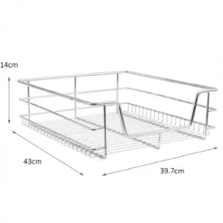 - Dimensions par panier : 43cm de Profondeur x 39,7cm de Large x 14cm de Haut (fils de 3cm et 9 cm d’épaisseur)