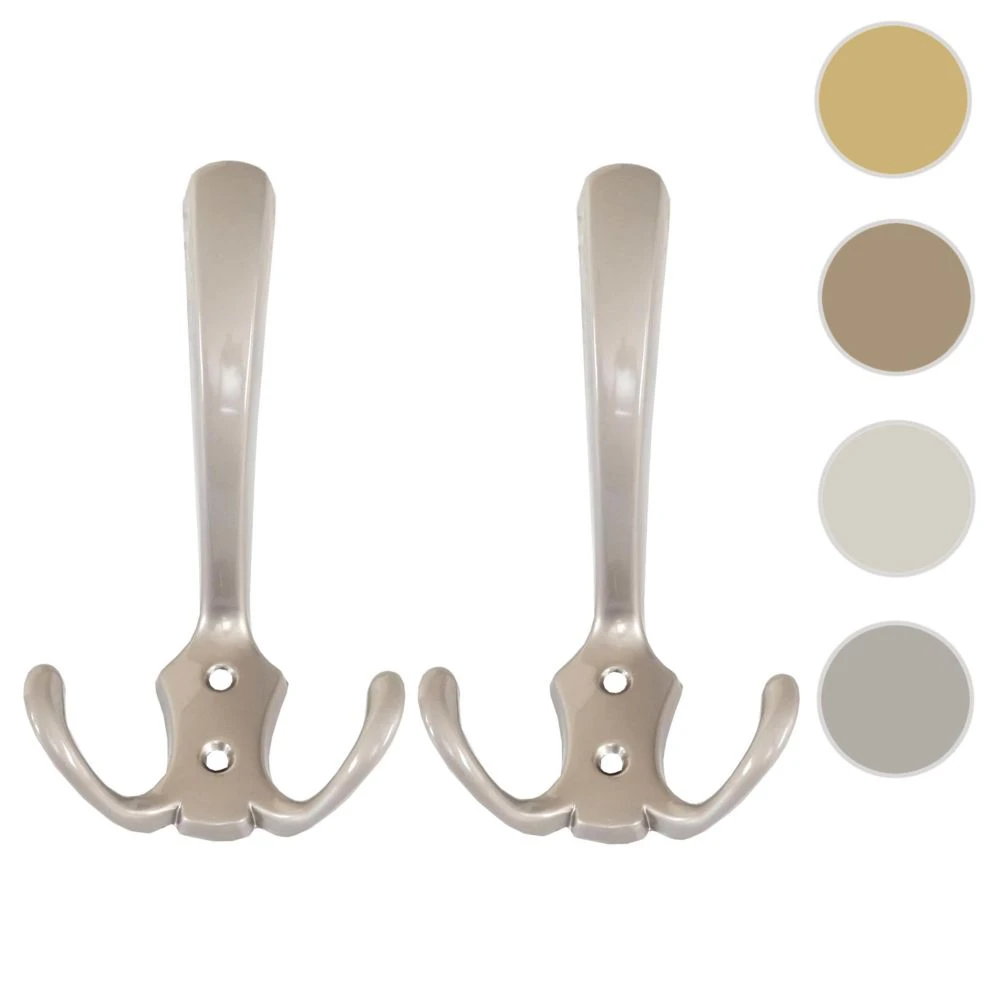 2x crochet de garderobe HWC-D46, crochet mural, patère, set ~ couleur: argent mat