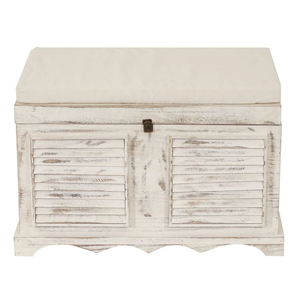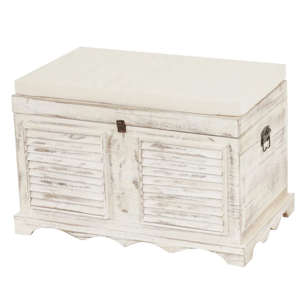 Points forts Mendler Banc banquette / coffre de rangement T356, style shabby 50x76x45cm ~ blanc
