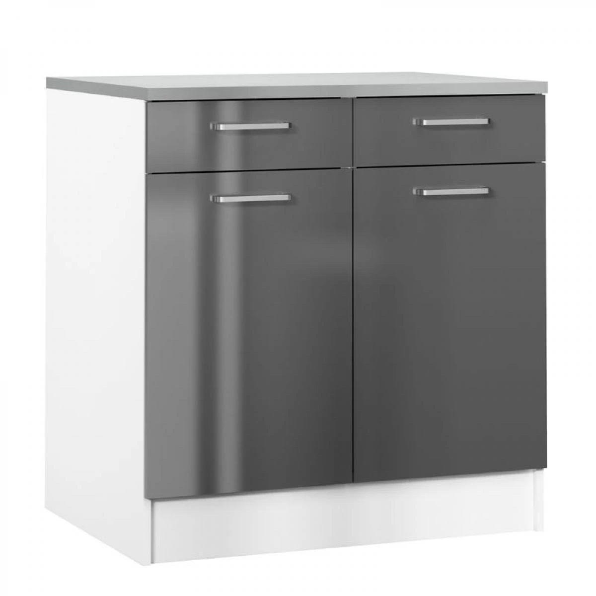 Un rangement selon vos goûtsPour bien aménager la cuisine et vous sentir à l’aise dans votre espace de travail, optez pour ce meuble bas MALICE. Parfaitement conçu, il se dote de volumes de rangement spacieux, avec 2 tiroirs et 1 placard équipé d’une étagère. Pratique, ce meuble bas à 2 portes se rend utile pour le stockage des éléments de cuisine encombrants ou les petits ustensiles que vous utilisez souvent. Idéal pour sublimer un intérieur contemporain, ce meuble bas de dimensions L. 80,1 x H. 85 x P. 60 cm s’intègre très simplement dans la pièce. Pour en prendre soin et préserver ses couleurs, passez un chiffon légèrement humide sur ses parois.Élégant et bien conçuPratique et élégant, ce meuble bas de cuisine au ton gris brillant vous permet de moduler votre cuisine selon vos envies. Assemblé avec soin, cet ameublement rehaussera l’élégance de votre intérieur. Ses deux portes offrent un accès sans contrainte à vos accessoires d’usage courant. Sa structure en panneaux de particules est conçue pour un usage durable.