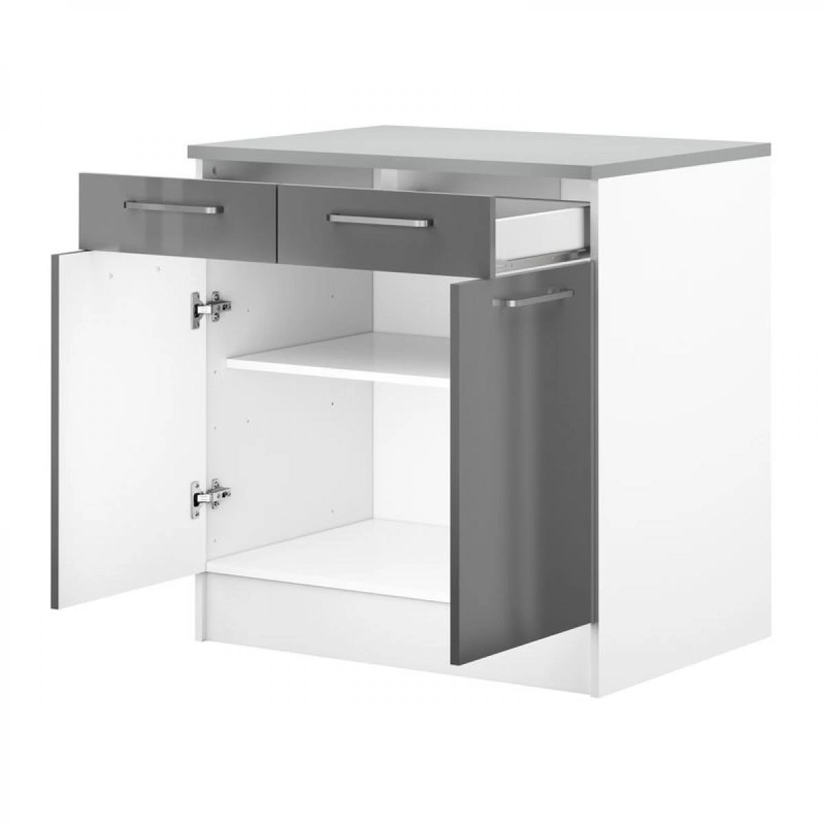 Socle :panneaux de particules ép. 16 mm décor blanc. H. 12 cm. . Tiroir :1. Façade tiroir H. 12,5 cm. Glissières à galet. . Façade :panneaux de particules mélaminés ép. 16 mm coloris gris brillant, plaqué 4 chants minces 0,5mm assortis. . Tablette :1. . Poignées :pvc coloris chromé mat. . Structure :panneaux de particules mélaminés ép. 15 mm coloris blanc. Chants visibles plaqués. Chants minces 0,5mm coloris blanc. . Plan de travail :panneaux de particules mélaminés ép. 22 mm coloris gris. 3 chants minces 0,5mm coloris gris et 1 chant kraft. . A monter soi-même. . Dimensions en cm :L. 80,1 – H. 85 – P. 60. . Façade porte (s) :2. Charnières métalliques Ø 35 mm. H. 57,1 cm. . Dispo pcs détachées donnée fournisseur :6 mois. .