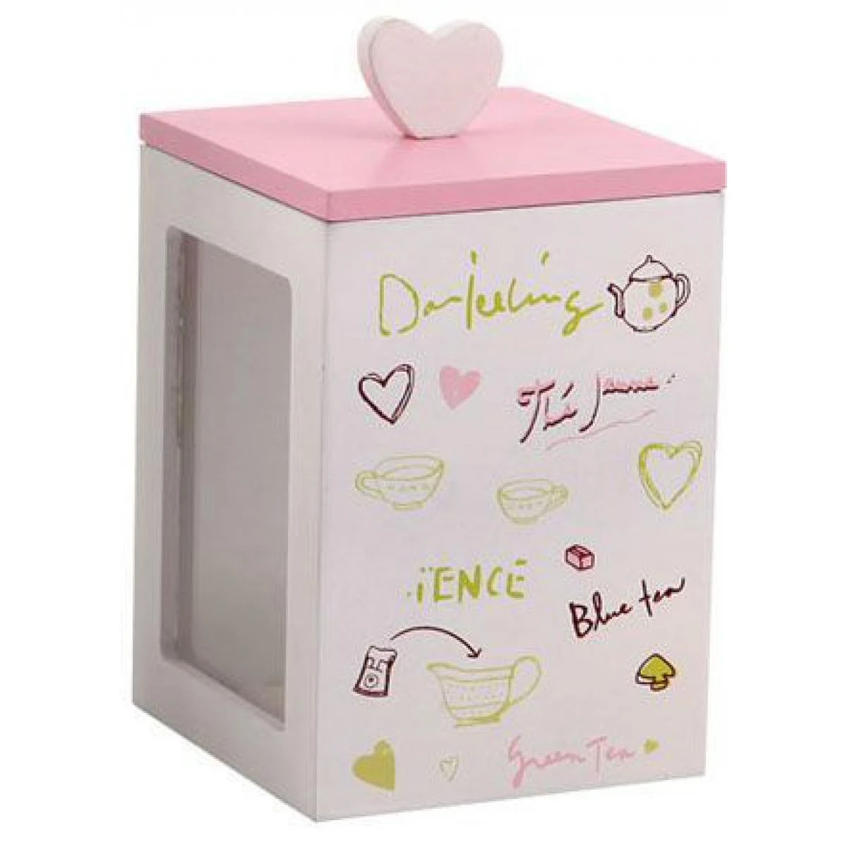 Points forts Aubry Gaspard Boîte à thé en bois rose et blanc.