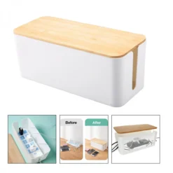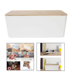 Cette boîte de rangement de câbles est conçue pour dissimuler les cordons d’alimentation, les parasurtenseurs et les chargeurs.
