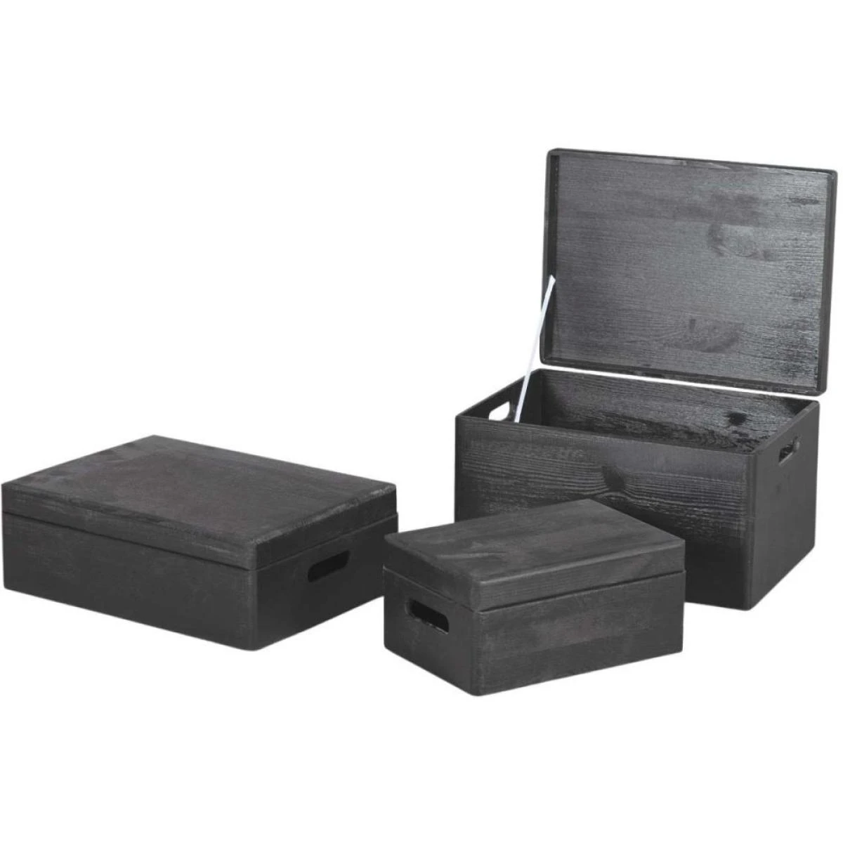 Points forts Pinus Boite de rangement avec couvercle en pinJet black 40x30x23 cm.