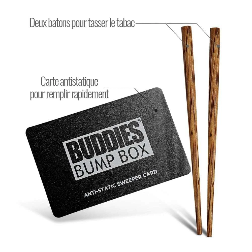 Voici la boite de remplissage pour 34 cones de la marque Buddies. La Buddies Bump Box propose 34 trous dans lesquels vous allez pouvoir glisser vos cones Joybox 11 cm. Avec ce système, il ne vous restera plus qu’Ă verser votre tabac sur la surface supĂ©rieure de la boite et d’utiliser la raclette fournie pour remplir chaque cone. Dimensions de la boite : 19.7 x 16.3 x 14.7 cm Matière : Mousse compensĂ©e CompatibilitĂ© : Cones 11 cm (non fournis) Si vous vous ĂŞtes dĂ©jĂ poser la question de savoir comment les autres font pour remplir leurs cones rapidement, voici la solution. La Buddies Bump Box est Ă la fois une boite de remplissage pour cones et une boite de rangement dans laquelle vous allez pouvoir laisser vos prĂ©parations. Son mode d’emploi est très simple puisqu’il vous suffit simplement de dĂ©poser chaque cone dans 34 des trous prĂ©vus Ă cet effet puis de verser votre tabac par dessus. Ensuite, il ne vous reste qu’Ă racler la surface afin de dĂ©poser le tabac dans chaque cone et le tour est jouĂ©. DonnĂ©es techniques : Dimensions : 19.7 x 16.3 x 14.7 cm Matière : Mousse compensĂ©e CompatibilitĂ© : Cones 11 cm (non fournis) Poids : Env. 350 g Contenu de la livraison : 1 x Boite Buddies Bump Box
