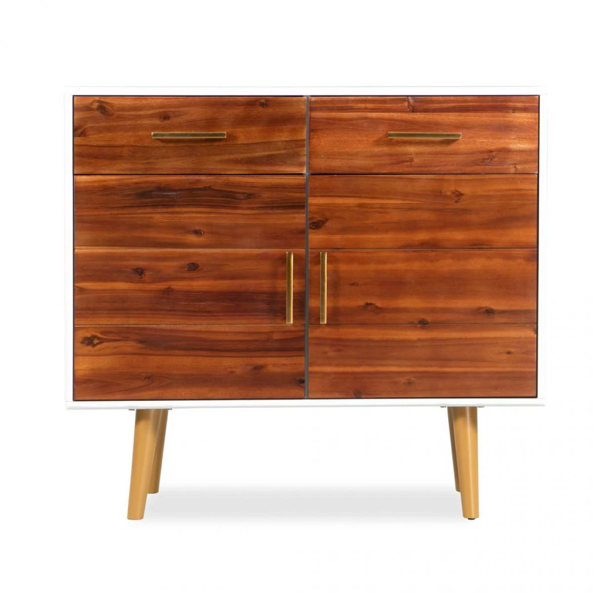 Notre buffet de haute qualitĂ© a un design Ă©lĂ©gant et sera un excellent ajout Ă votre salon, salle Ă manger, couloir, etc. Le buffet a Ă©tĂ© fabriquĂ© habilement en bois d’acacia massif et de panneaux MDF de haute qualitĂ©, ce qui le rend très robuste et durable. Il a deux tiroirs et deux portes, qui offrent un grand espace de rangement pour les livres, les supports de mĂ©dias et d’autres articles. Les tiroirs et les portes des armoires ont des poignĂ©es en laiton qui ajoutent au style rĂ©tro. Le dessus est idĂ©al pour exposer des objets dĂ©coratifs, des cadres pour photos ou des plantes en pot. L’assemblage est facile.