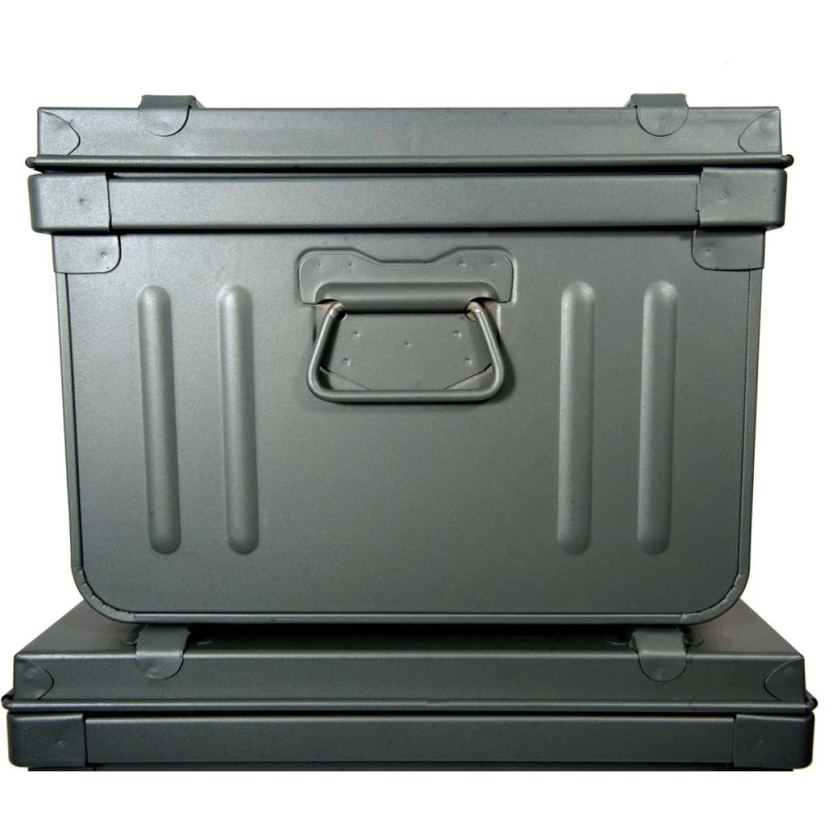 Informations complémentaires : Poignées latérales , Fournie avec une tringle cadenassable (cadenas non fourni) , 3 raidisseurs sur le couvercle pour superposer les cantines facilement , 2 raidisseurs sur le fond pour pouvoir y fixer des roulettes , Epaisseur du couvercle : 35 mm , Classée non feu M1 (combustible non inflammable) , Origine France Garantie