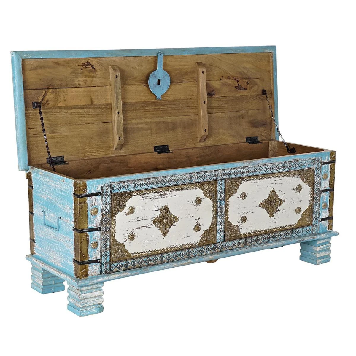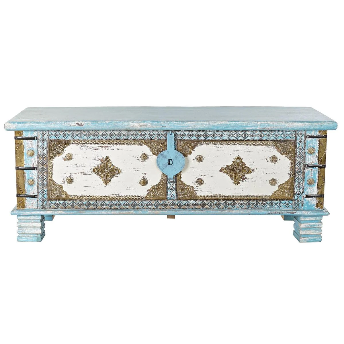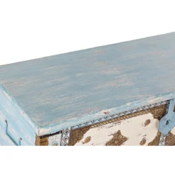 Coffre de rangement en bois coloris bleu vieilli et laiton