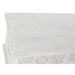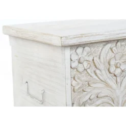 Points forts Pegane Coffre de rangement en bois de manguier coloris blanc – Longueur 115 x Profondeur 40 x Hauteur 45 cm
