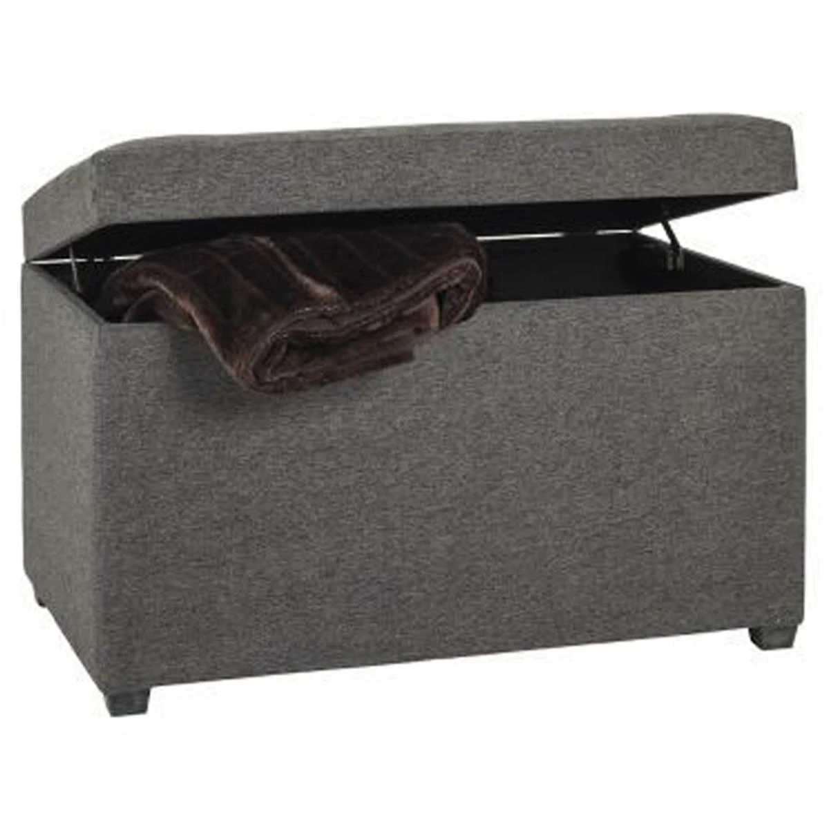 Coffre de rangement recouvert tissu couleur anthracite, pliable et avec assise rembourrée et rabattable. Dimensions : L 65 x H 40 x P 42 cm. Matière : Couvrir 55% lin / 45% viscose; Pieds en caoutchouc dur, mousse 100% PU, intérieur 100% polyester. Couleur : anthracite. Poids : 9.3 kg