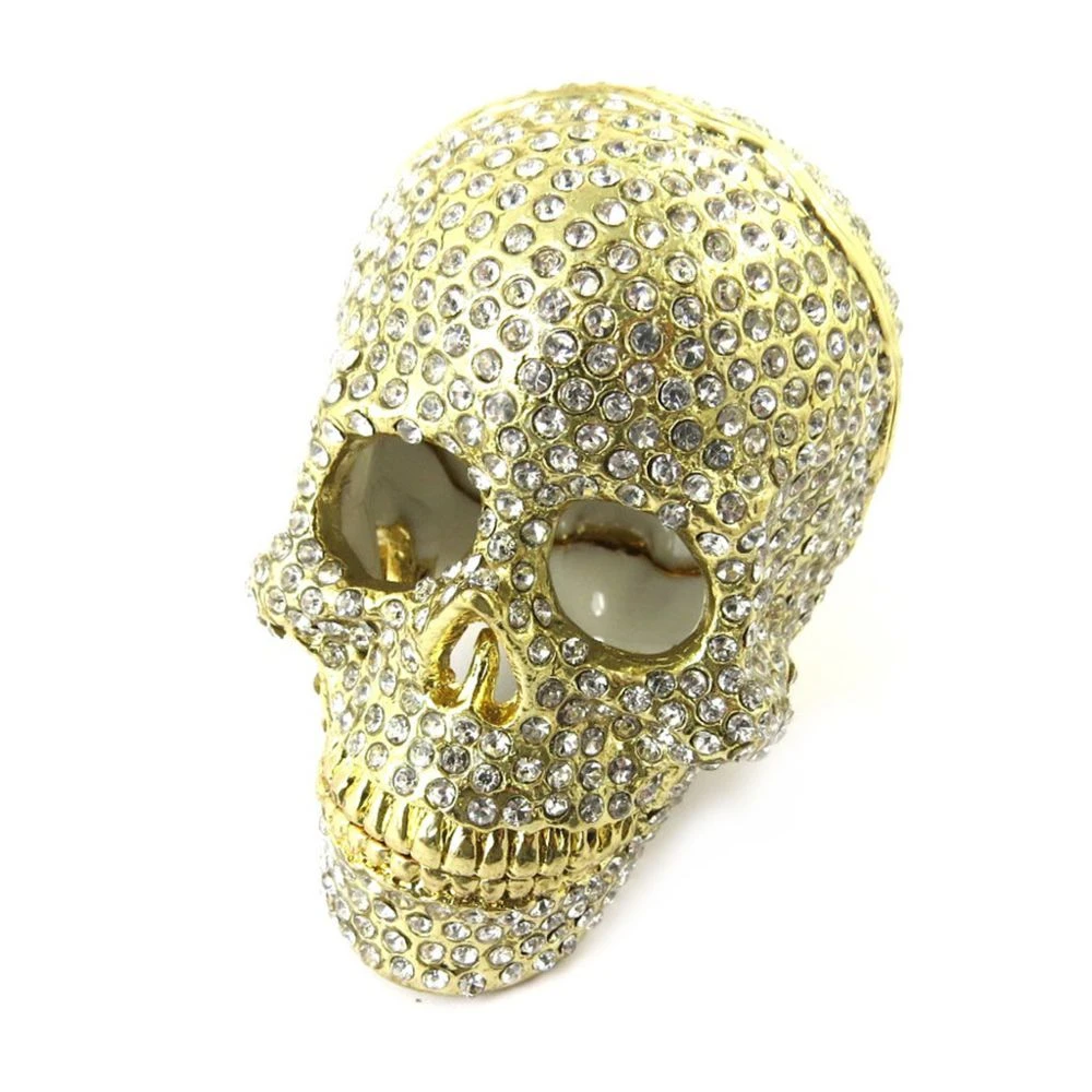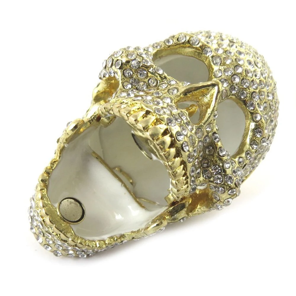 Véritable bijou que ces boites à bijoux en métal laqué ‘Tête de Mort’ incrustée de cristaux. On adore son intérieur laqué ! Dimensions : 60 mm.