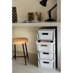 Points forts Curver Tour 4 tiroirs Infinity 10 litres blanc gris