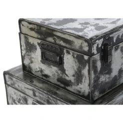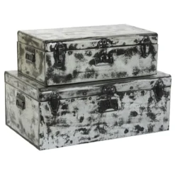 Ensemble de 2 coffres en métal coloris gris/blanc