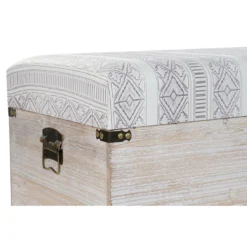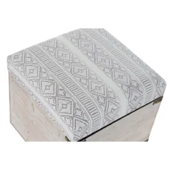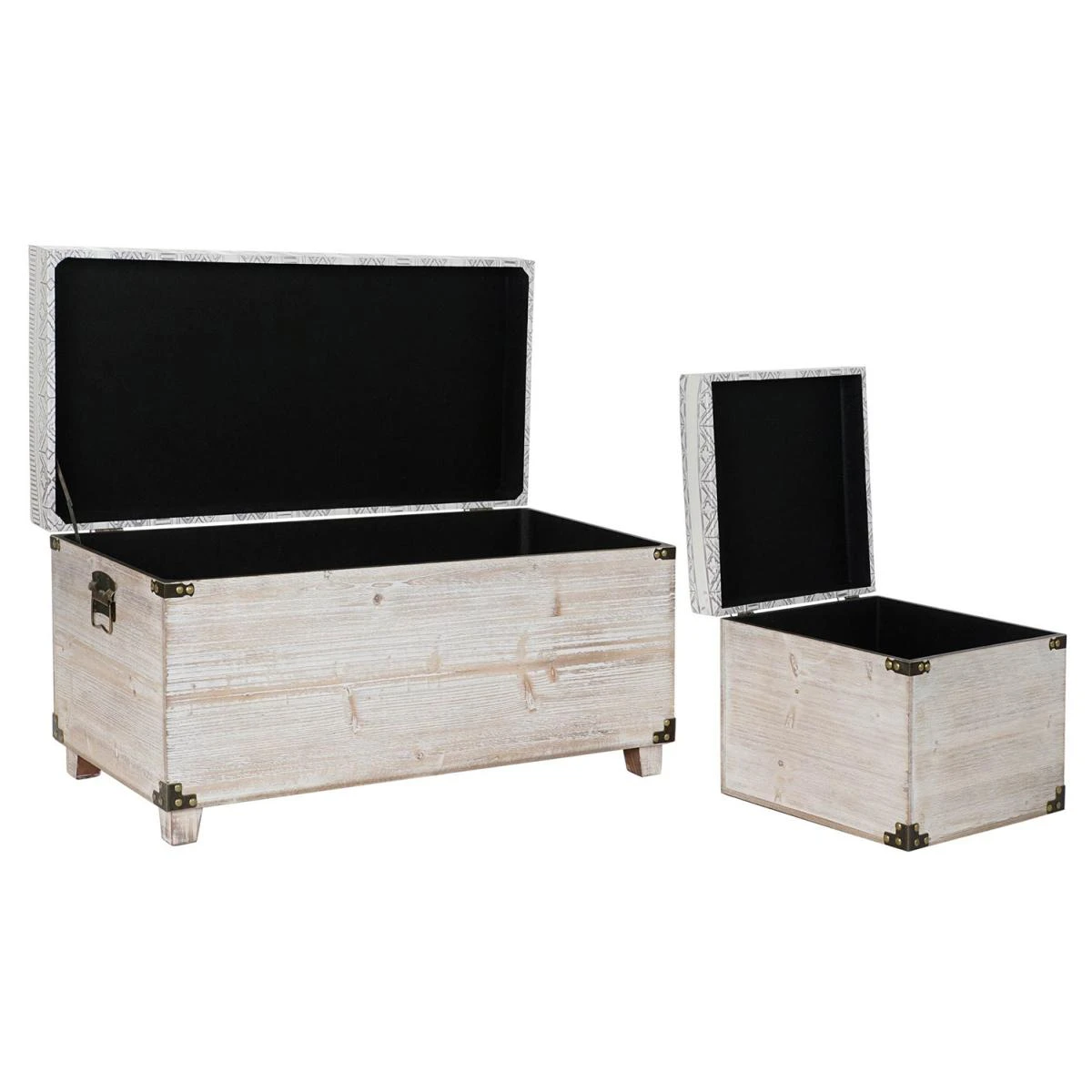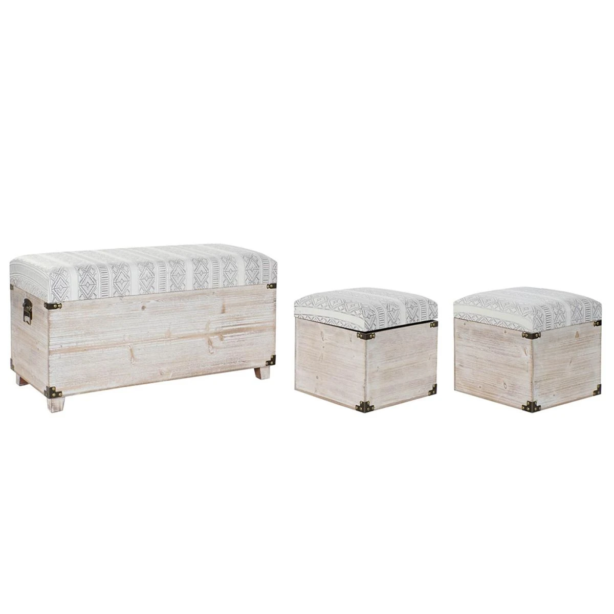 Ensemble de 3 coffres / bancs en bois naturel et polyuréthane coloris décapage blanc