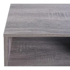 Finition :papier décor imitation chêne foncé. . Structure :panneaux de particules. . Dimensions en cm :L. 35,7 – H. 35,8 – P. 38,2. Espaces de rangement : 2 x L. 33,1 – H.16,1 – P.38.2 cm. .