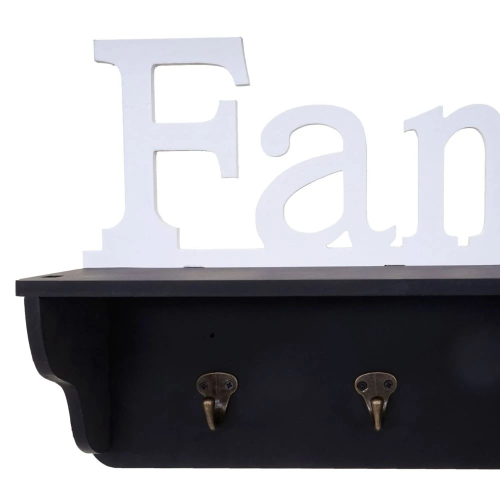 Points forts Mendler Garderobe murale HWC-D41 Family, planche vestiaire, étagère, 4 crochets massifs 30x60x13cm ~ noir/blanc