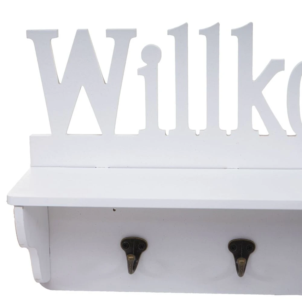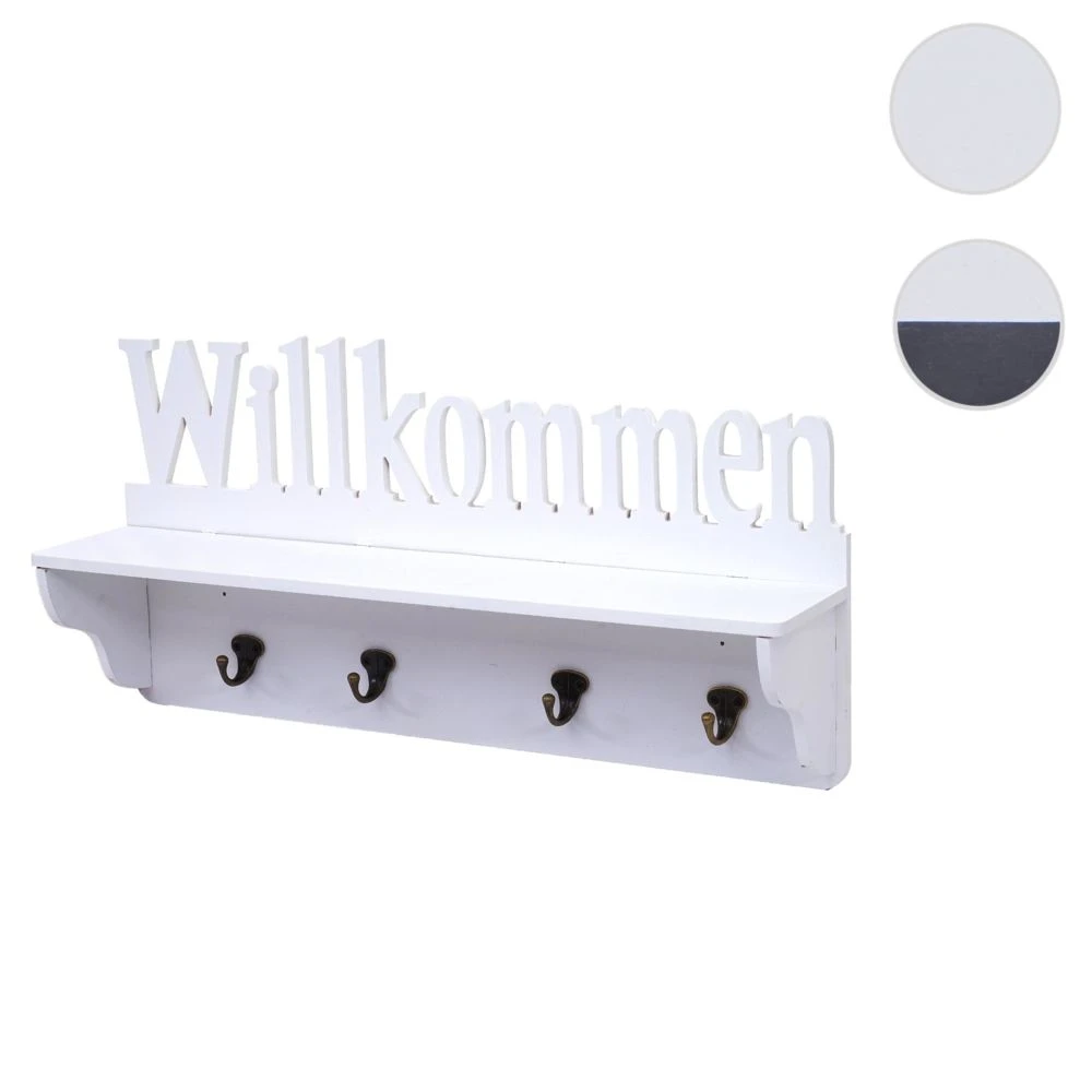 Points forts Mendler Garderobe murale HWC-D41 Willkommen, planche vestiaire, étagère, 4 crochets massifs 30x60x13cm ~ blanc