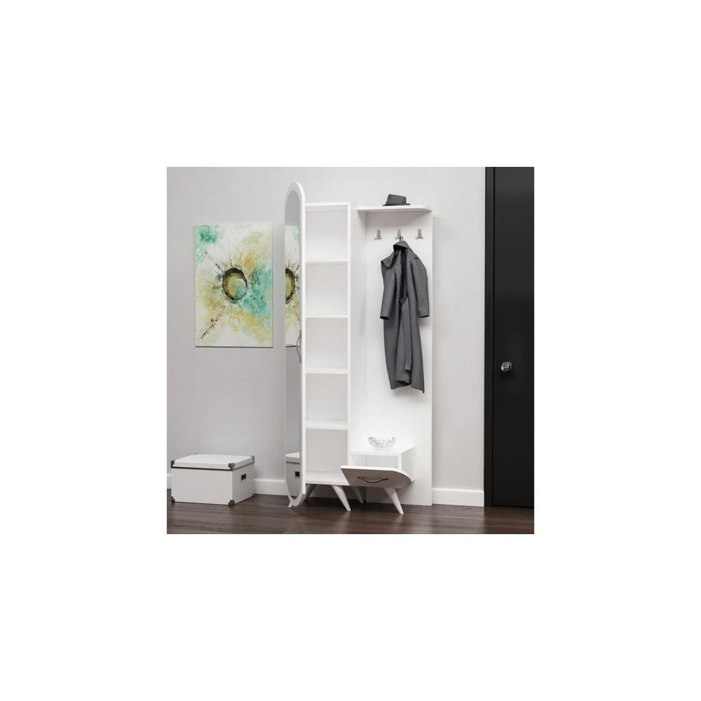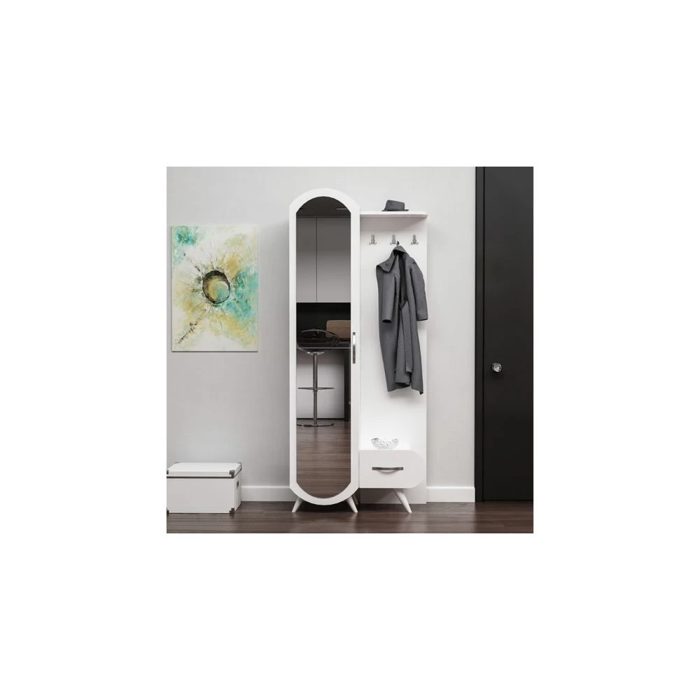 Ce meuble d’entrée, moderne et fonctionnel, est la solution idéale pour garder vêtements et objets divers en ordre. Grâce à sa conception, il est parfait pour le salon. Kit de montage inclus, facile à nettoyer, facile à assembler. Couleur: Blanc, Chrome | Dimensions: 80x35x180 cm | Matériel: Panneau de Particules, Métal | Poids du produit: 49,5 Kg | Poids supporté: Chaque étagère 3 Kg, chaque crochet 1 Kg | Poids de l’emballage: 49,95 Kg | Nombre de boîtes: 2 | Dimensions des boites: 170×38,5xH10 cm – 188x45xH5 cm