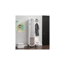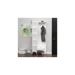 Points forts Homemania HOMEMANIA Vestiaire – Meuble d’Entree Kerry Armoire – avec Étagères à Chaussures, Miroir, Porte, Tiroir – Blanc en Bois, 80 x 35 x 180 cm