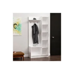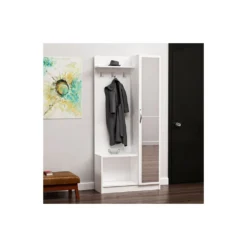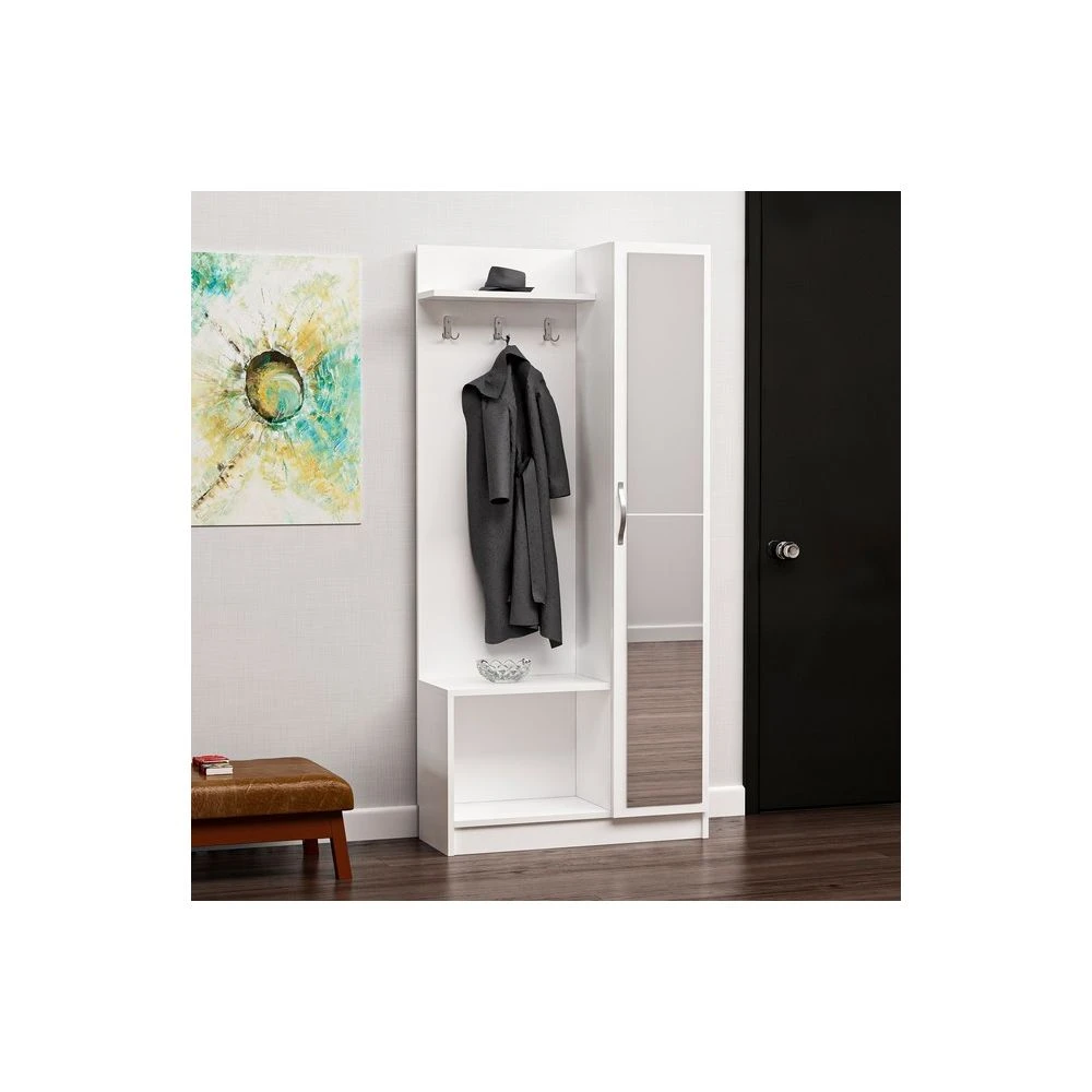 Ce meuble d’entrée, moderne et fonctionnel, est la solution idéale pour garder vêtements et objets divers en ordre. Grâce à sa conception, il est parfait pour le salon. Kit de montage inclus, facile à nettoyer, facile à assembler. Couleur: Blanc | Dimensions: 80x32x173 cm | Matériel: Mélamine 18 mm Qualité E1. Panneau stratifié. Bandes latérales en PVC 0,40 mm | Poids du produit: 44,2 Kg | Poids supporté: Chaque crochet 3 Kg, 10 Kg | Poids de l’emballage: 45 Kg | Nombre de boîtes: 2 | Dimensions des boites: 181x54xH8,5 cm – 85x35xH12 cm