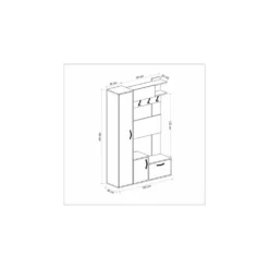 Ce meuble d’entrée, moderne et fonctionnel, est la solution idéale pour garder vêtements et objets divers en ordre. Grâce à sa conception, il est parfait pour le salon. Kit de montage inclus, facile à nettoyer, facile à assembler. Couleur: Chêne, Anthracite | Dimensions: 125x35x184 cm | Matériel: Panneau de Particules | Poids du produit: 66,45 Kg | Poids supporté: 15 Kg | Poids de l’emballage: 67,65 Kg | Nombre de boîtes: 3 | Dimensions des boites: 188x41xH9 cm – 186x41xH7 cm – 96x40xH14,5 cm