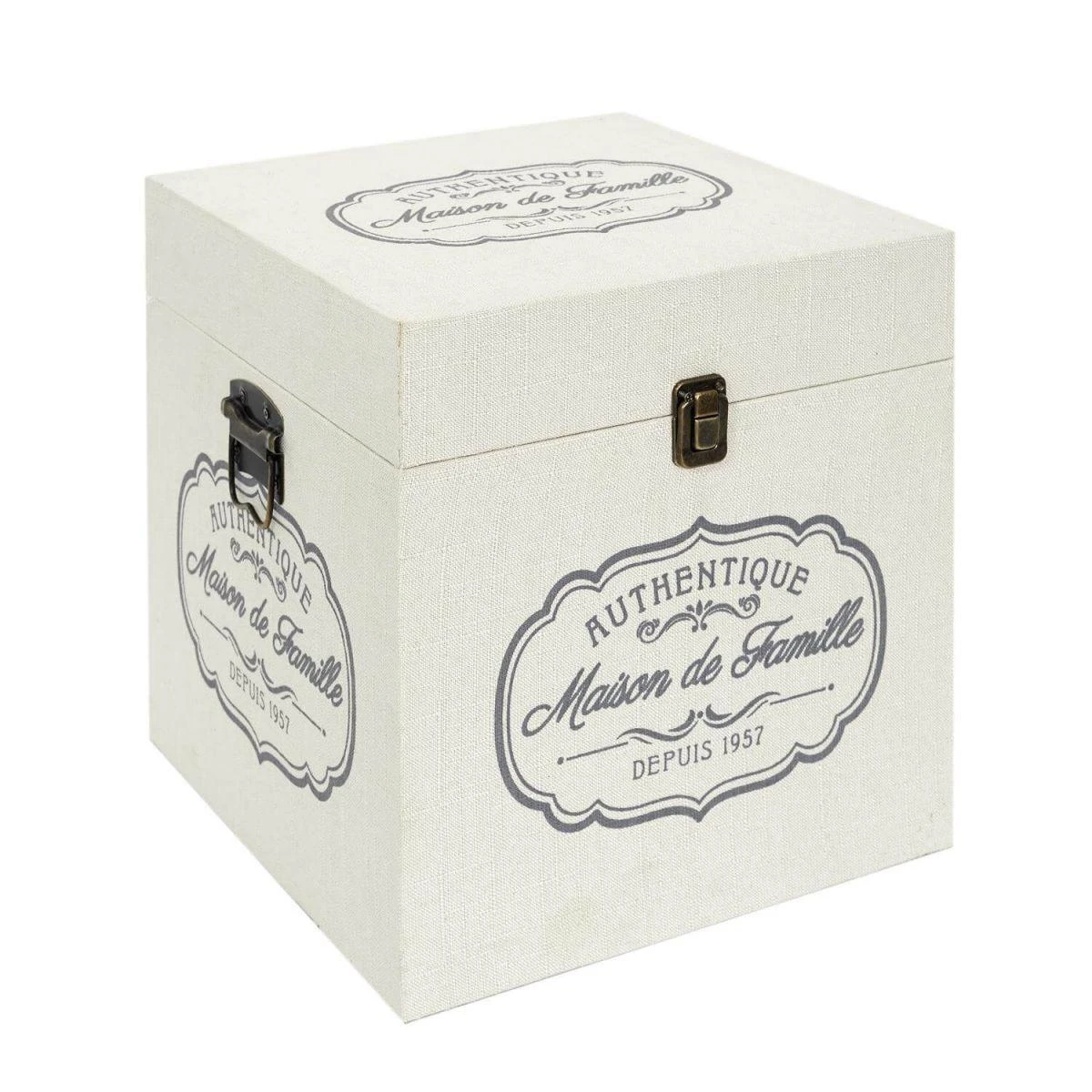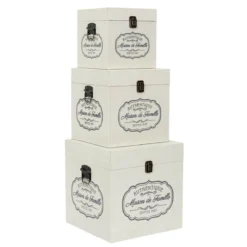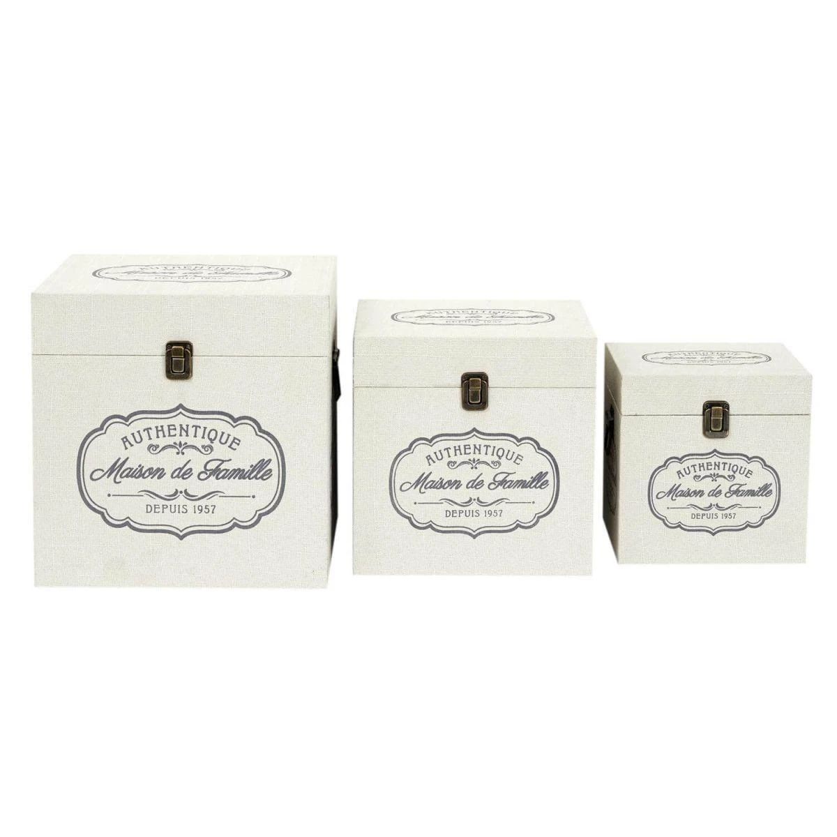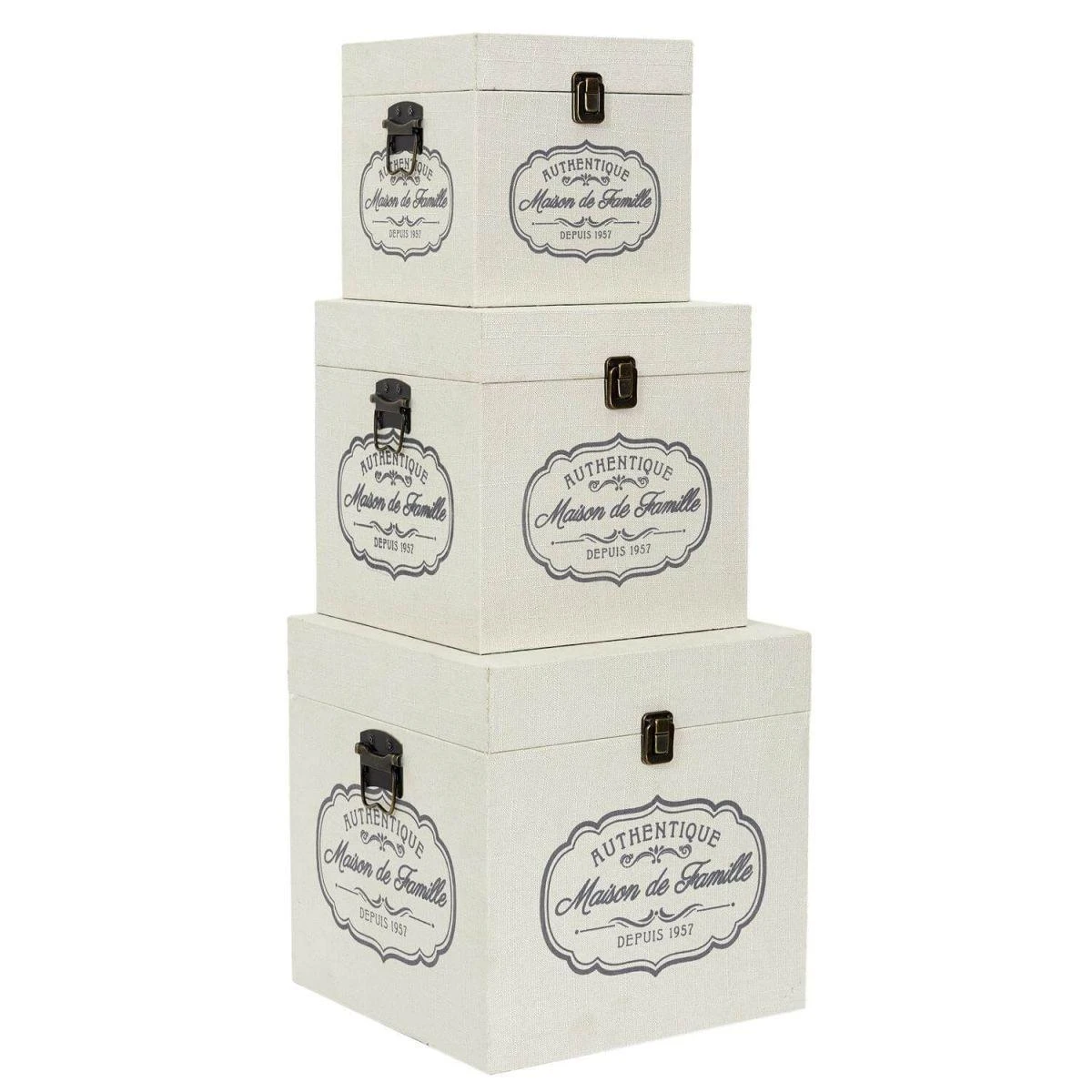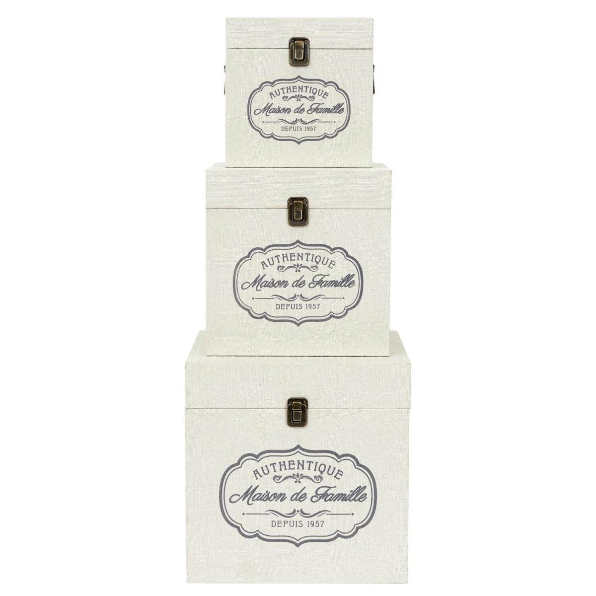Lot de 3 Malles Cubes Tissu Blanc Motif Authentique de la gamme Inga.