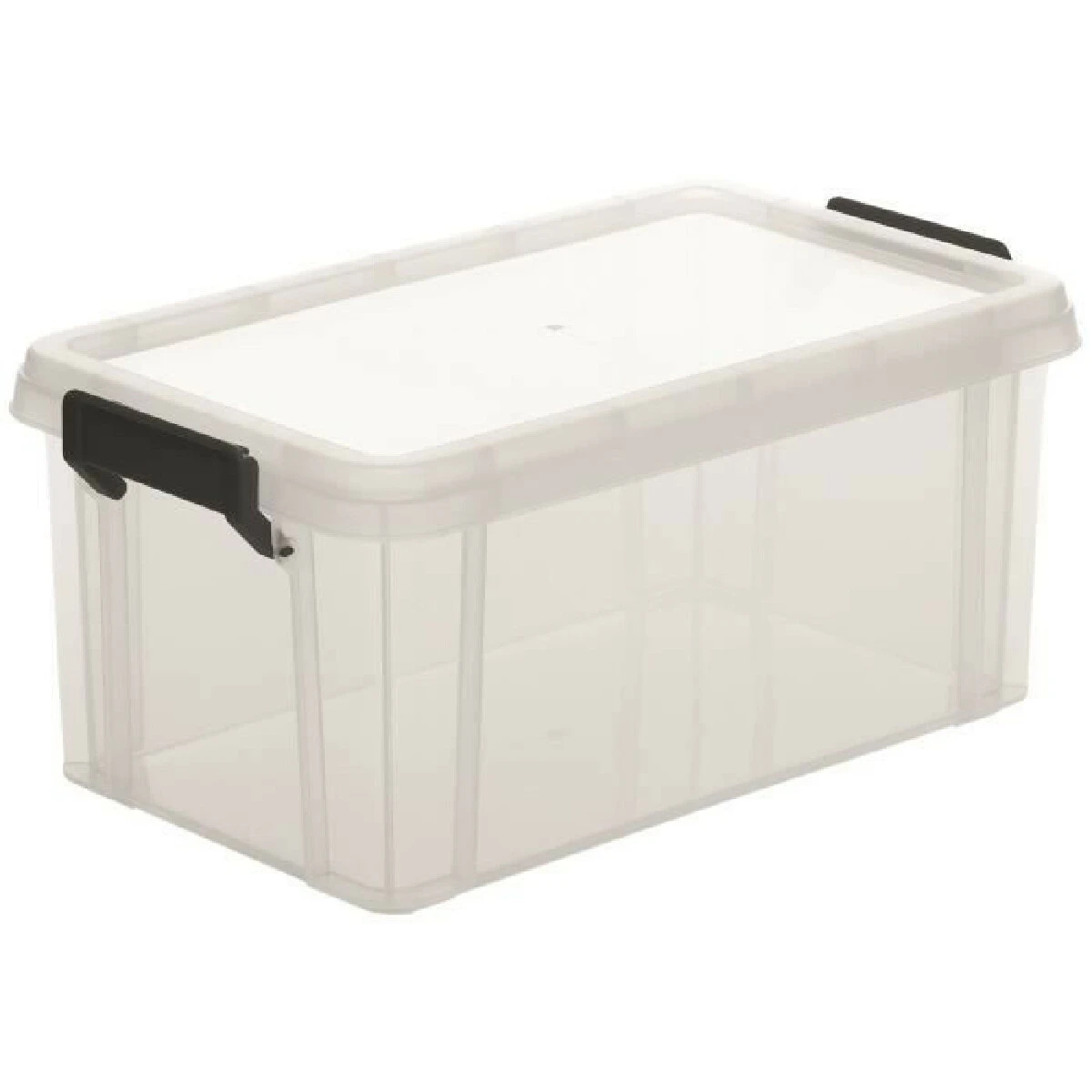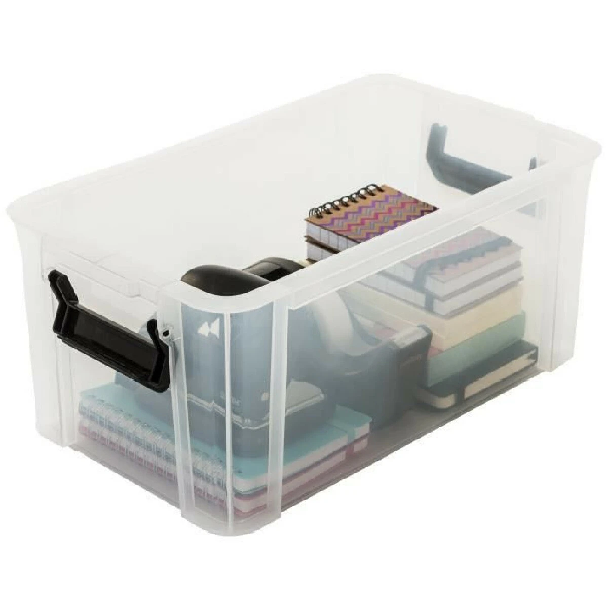 IRIS OHYAMA Lot de 4 boĂ®tes de rangement Multi Box – En plastique robuste – Pour mettre de l’ordre dans votre maison ou garage – 2 clips permettent de sceller le couvercle sur les boĂ®tes – Avec couvercle incurvĂ© pour une superposition stable des boĂ®tes – Volume d’une boĂ®te : 6 L – L36,5 x l21,4 x H16,5 cm – Transparent et Noir.