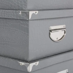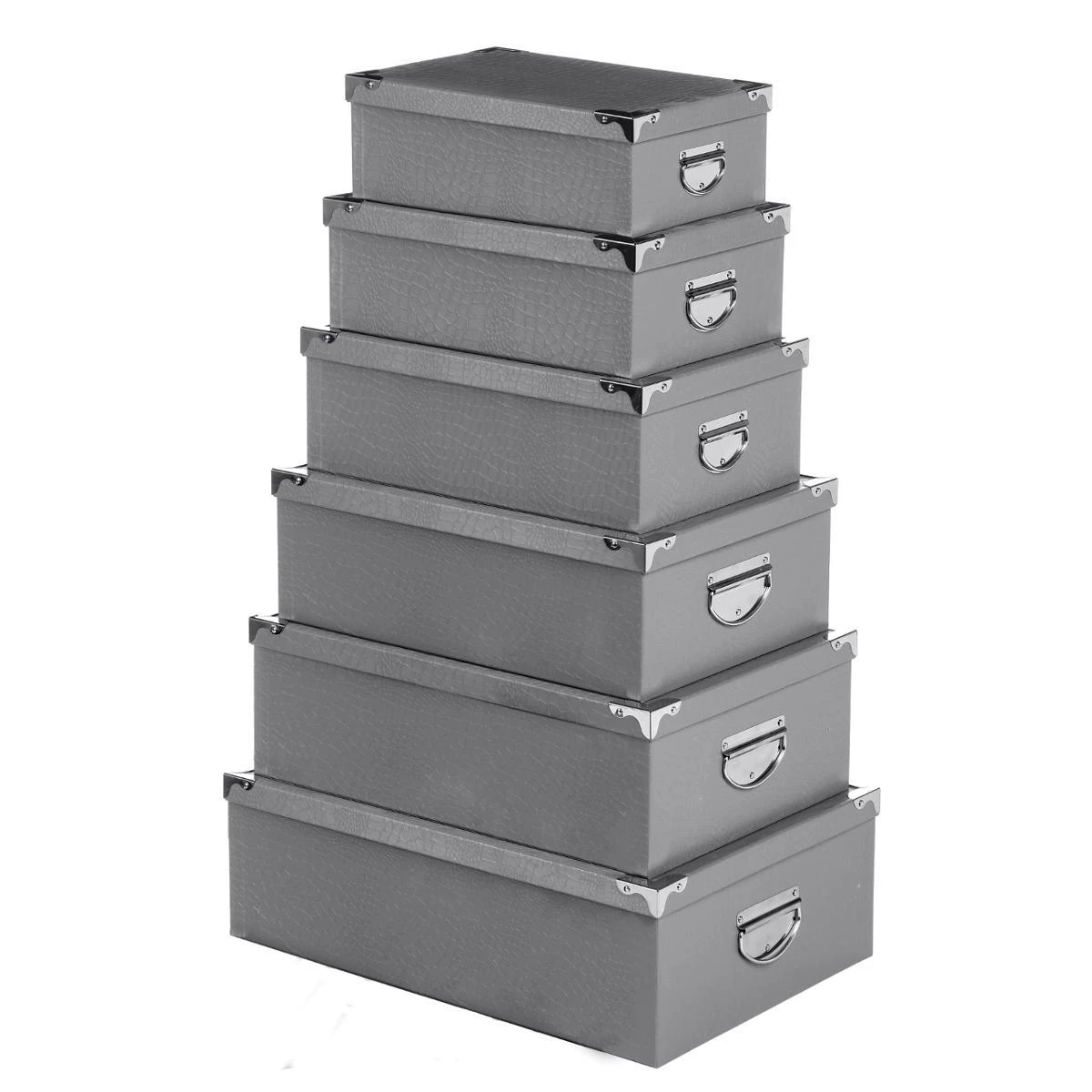 La marque 5Five® propose une large gamme de produits astucieusement pensĂ©s et designĂ©s pour tous les jours. Pour se simplifier la vie Ă la maison : Ă la cuisine ou dans la salle de bain, au garage ou Ă la cave, dans les placards…La marque d’objets intelligents qui amĂ©liorent le quotidien !Lot de 6 boĂ®tes crocos, carton et mĂ©tal, dimensions 52×36.5×17 cm