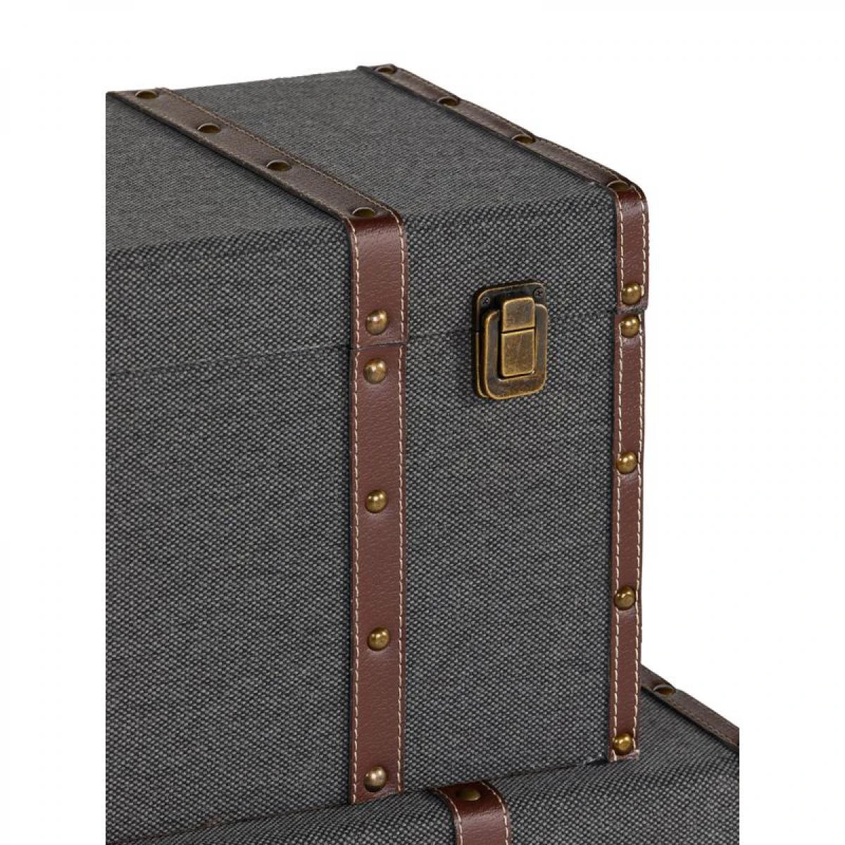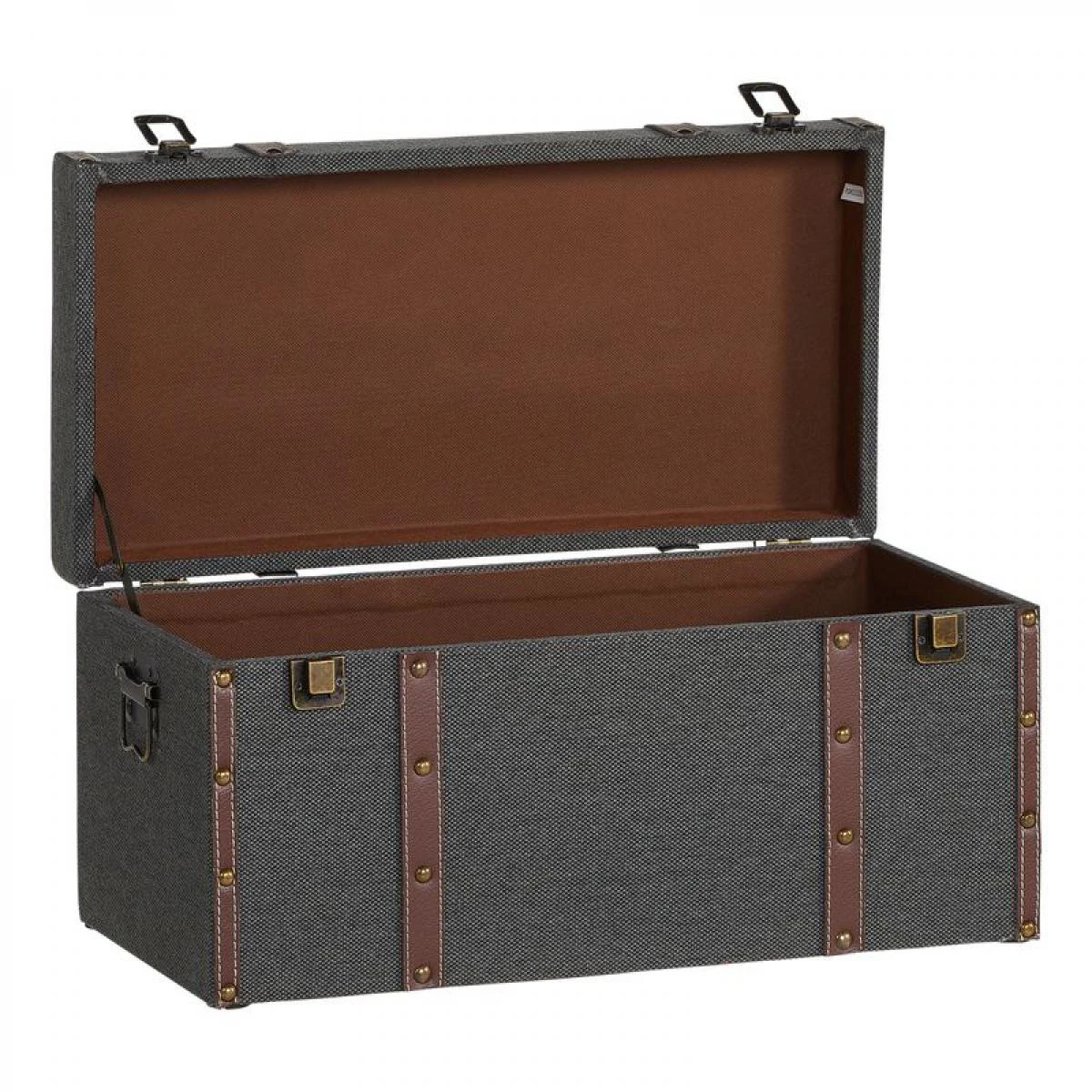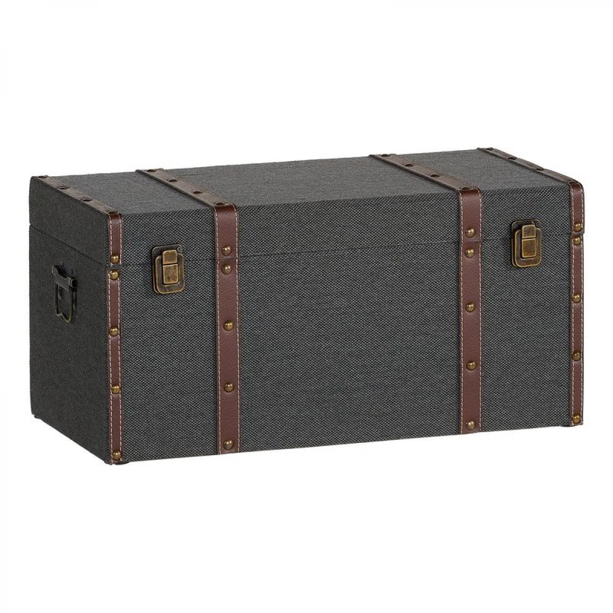 Finition :vieilli. . Peinture :Coloris gris. . Structure :panneaux de particule. Toile vintage 70% coton, 30% polyester. Doublure en intissĂ© 100% polypropylène. Accessoires en fer. Cerclage en faux cuir. . Dimensions en cm :L. 51 – l. 25 – H. 24 cm. . Dispo pcs dĂ©tachĂ©es donnĂ©e fournisseur :N/C. .