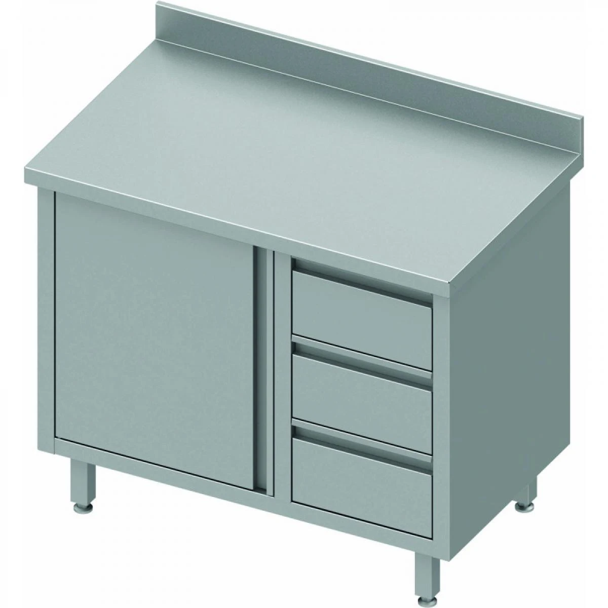Meuble bas cuisine inox avec 1 porte battante Ă gauche, 3 tiroirs et une Ă©tagère dĂ©plaçable Ă l’intĂ©rieur du placard. Version soudĂ©e. La hauteur de cette table est de 900 mm. Le plan de travail renforcĂ© d’un panneau laminĂ© double face d’une Ă©paisseur de 18 mm. Le bord arrière a une hauteur de 85 mm. Les tiroirs ont une profondeur de 150 mm et la porte du placard a les charnières Ă gauche DĂ©lai de livraison : 10 Ă 15 jours (production Ă la demande) |