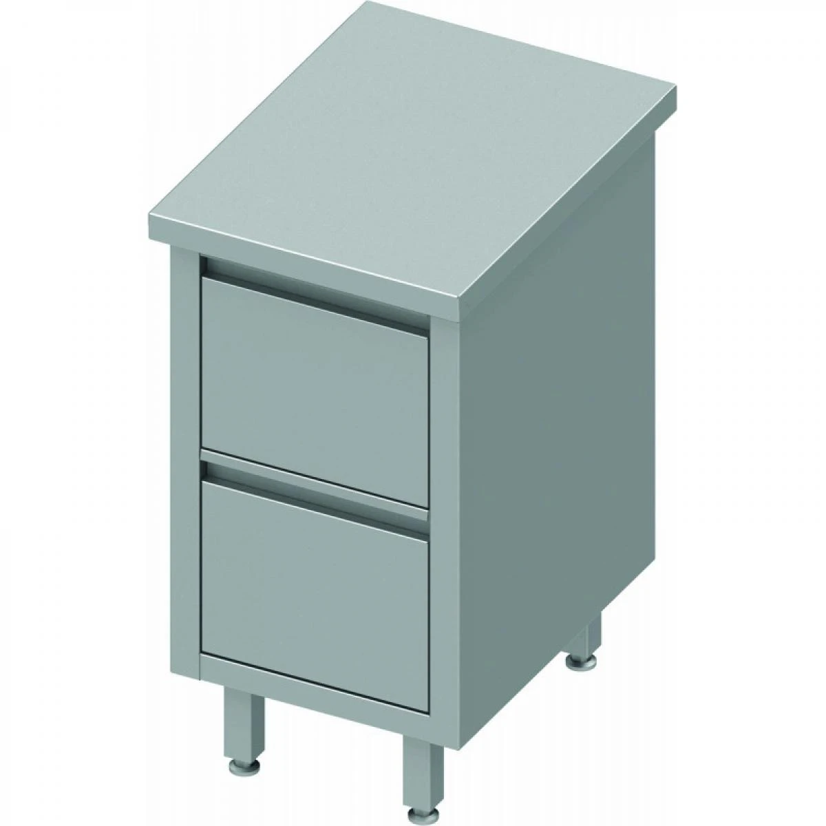 Meuble bas inox professionnel sans dosseret, avec 2 tiroirs de la gamme 800. Les tiroirs ont une profondeur de 200 mm. Version soudĂ©e. La hauteur de cette table est de 900 mm et sa longueur 450 mm. Le plan de travail renforcĂ© d’un panneau laminĂ© double face d’une Ă©paisseur de 18 mm. DĂ©lai de livraison : 10 Ă 15 jours (production Ă la demande) |