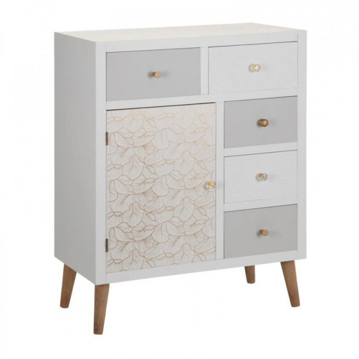 Points forts Tousmesmeubles Meuble d’entrée 1 porte 5 tiroirs Blanc/Gris – KAÏA