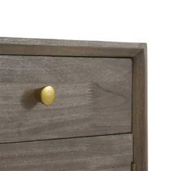 Look intemporel et belle qualitĂ© de rĂ©alisation pour ce meuble d’entrĂ©e 2 portes 2 tiroirs Ă la teinte Noyer clair chaleureuse et contemporaine.