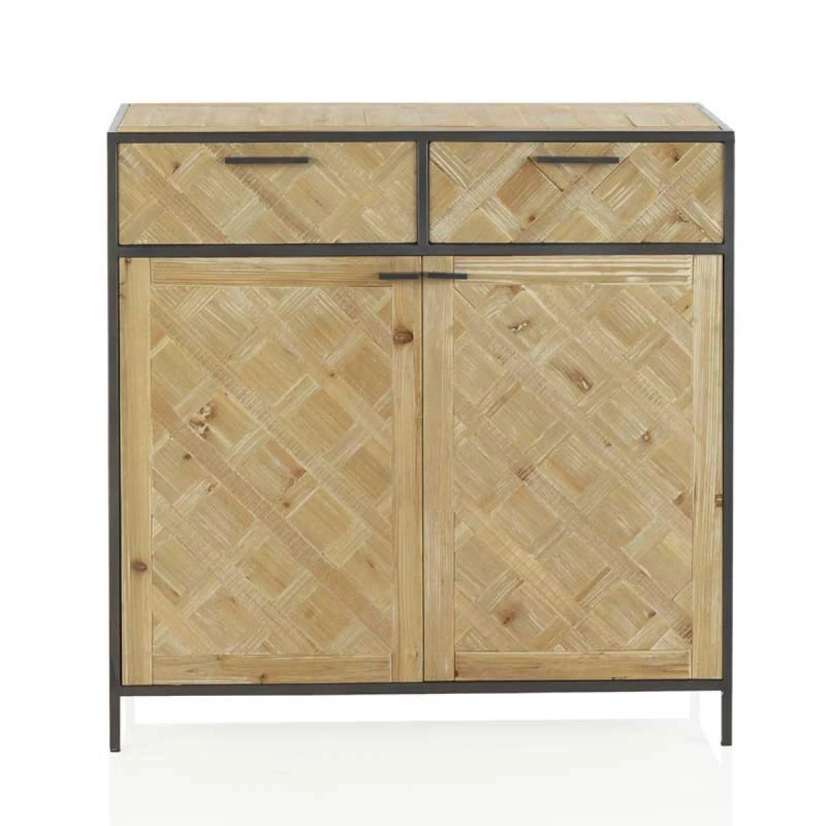 Bois massif et finitions de qualité pour ce meuble d’entrée 2 portes 2 tiroirs combianant un design contemporain et la tendance mobilier Industriel.