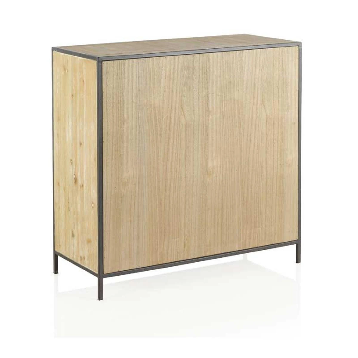 Tout souligne la beauté du veinage du bois massif de Pin sur ce meuble de complément à la dimension optimisée, la structure filiforme en métal laqué noir et le magnifique parquetage qui lui donnent du relief.