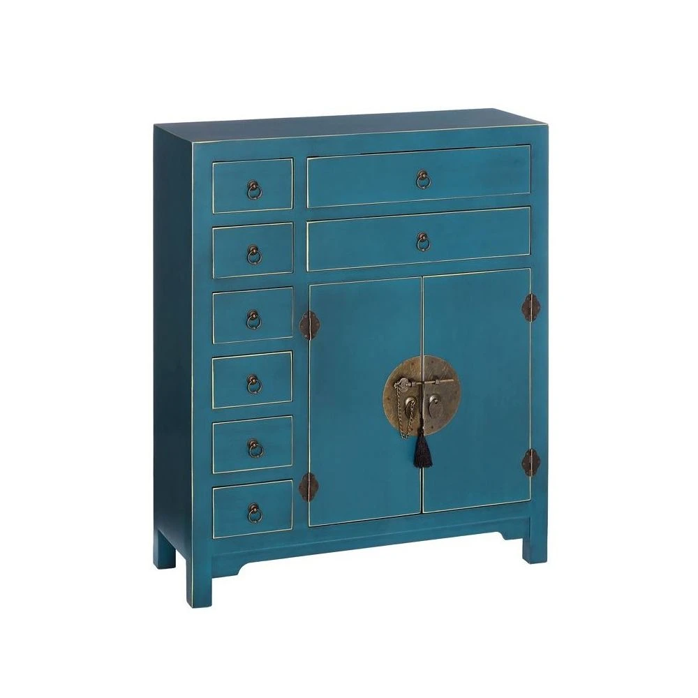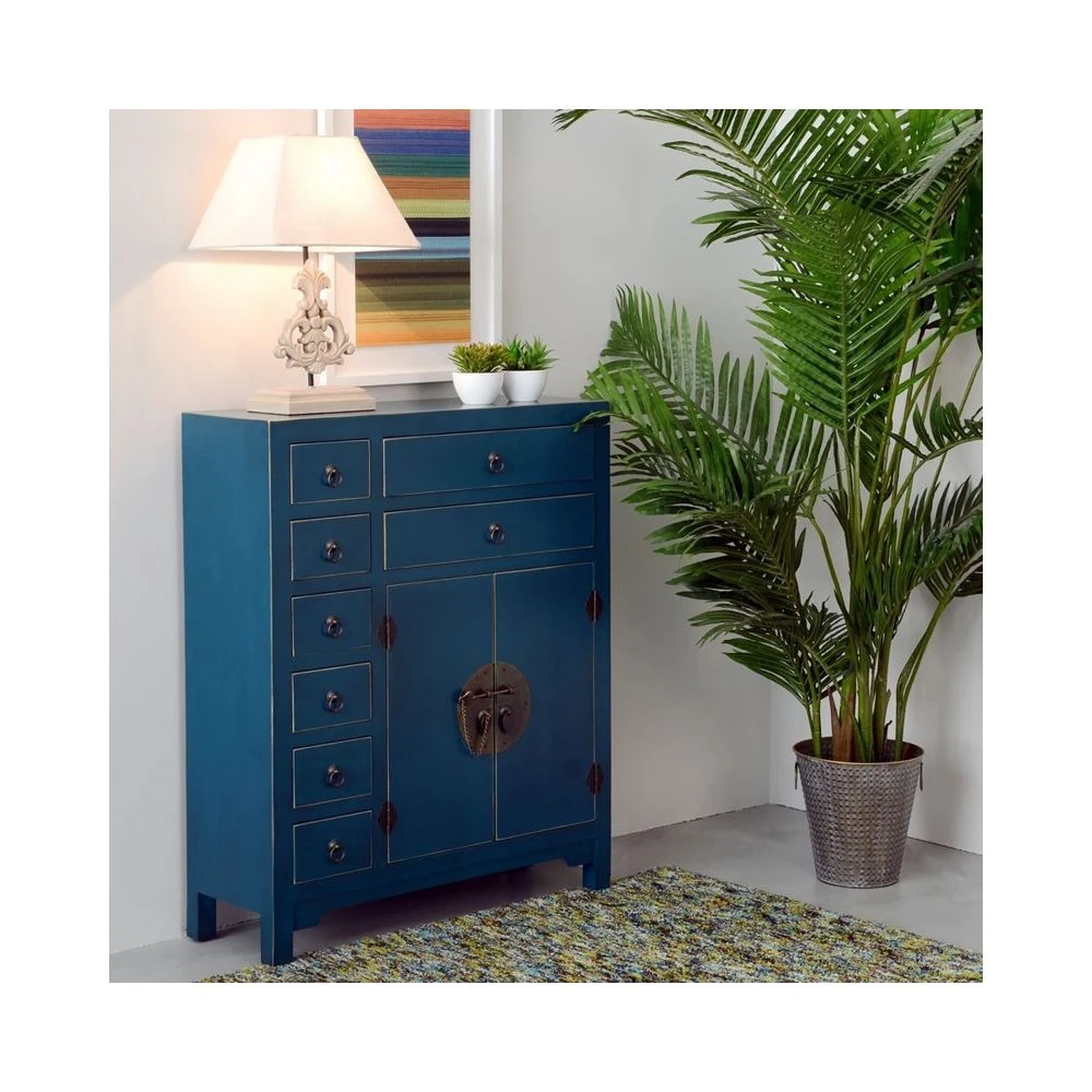 Points forts Tousmesmeubles Meuble d’entrĂ©e 2 portes, 8 tiroirs Bleu Meuble Chinois – PEKIN