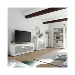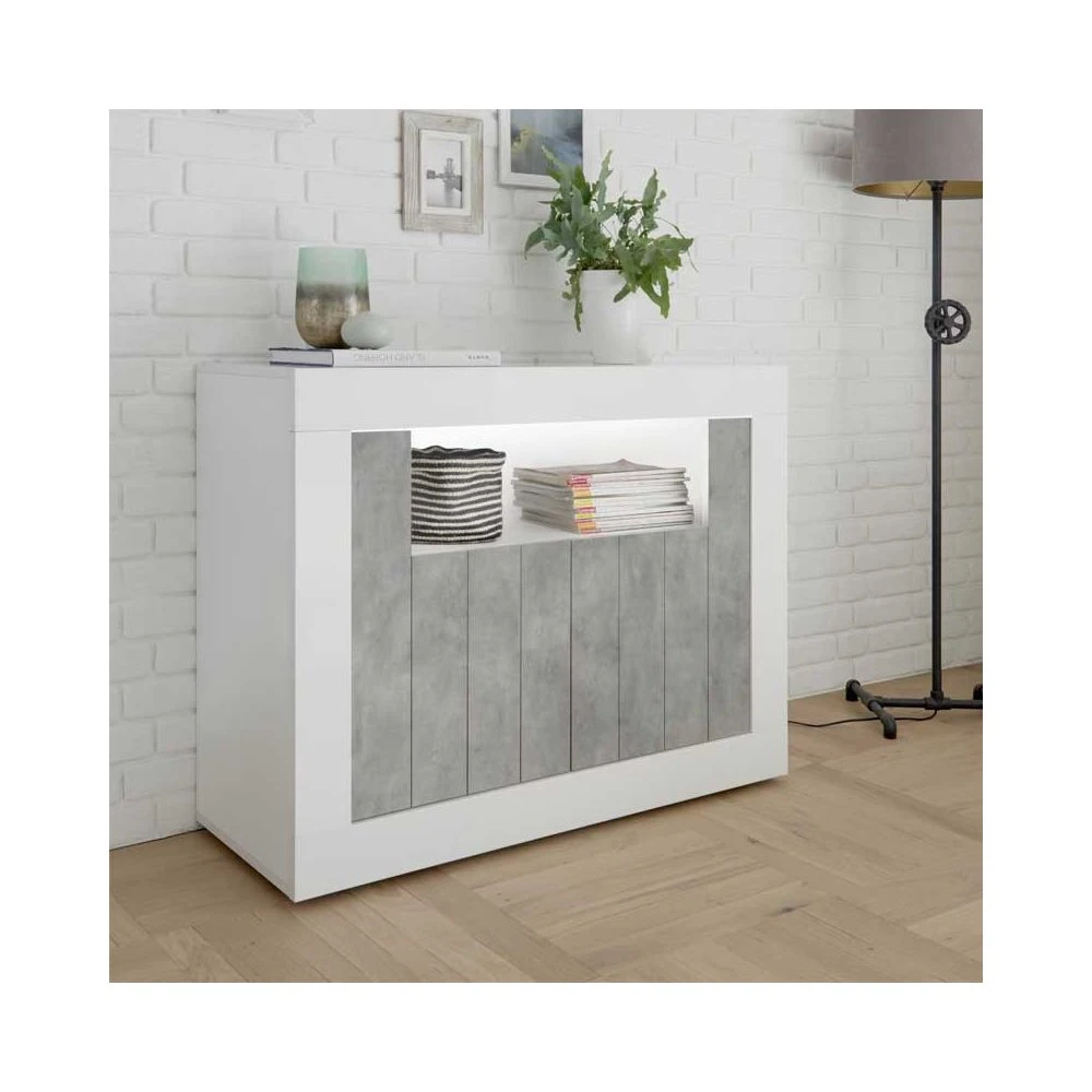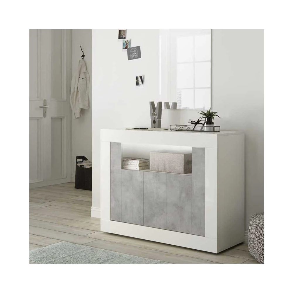 Points forts Tousmesmeubles Meuble d’entrée 2 portes Blanc/Béton ciré clair – LUBIO