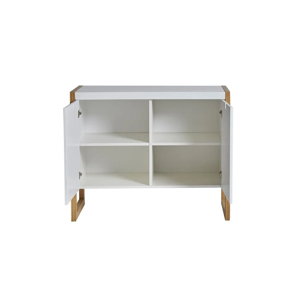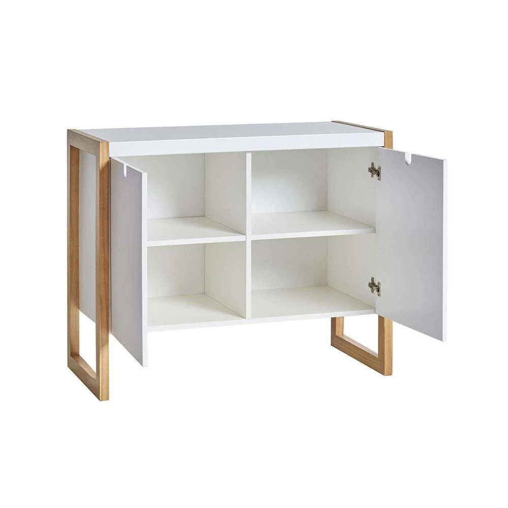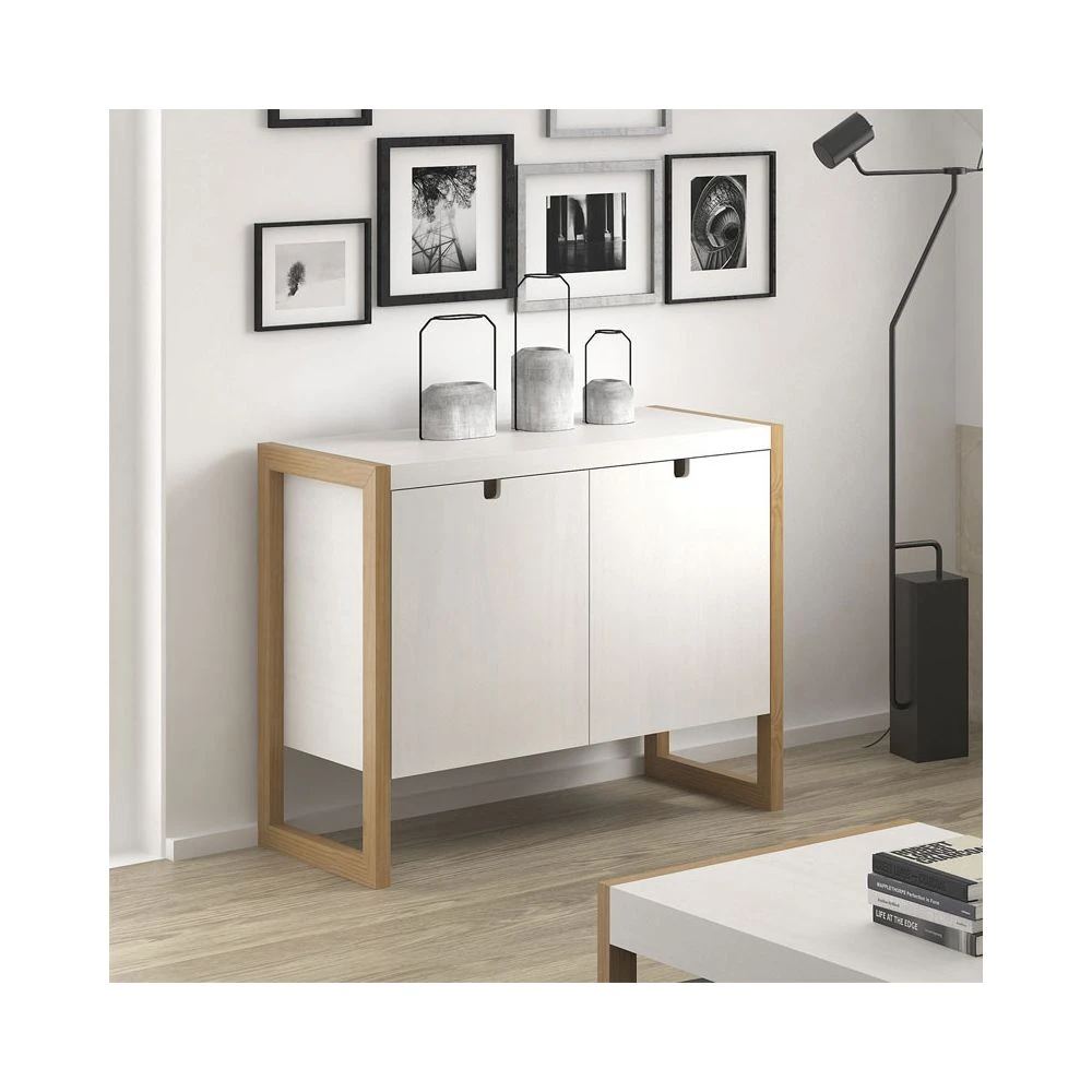 Modernisez votre entrée avec ce meuble d’entrée 2 portes au design minimaliste et proposant la mise en avant d’un corps teinte blanc pur, délicatement mis en contraste par un piétement en bois de Pin teinte Chêne blond.