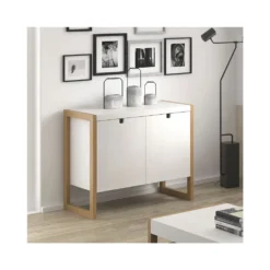 Points forts Tousmesmeubles Meuble d’entrée 2 portes Blanc/Chêne – ODILE