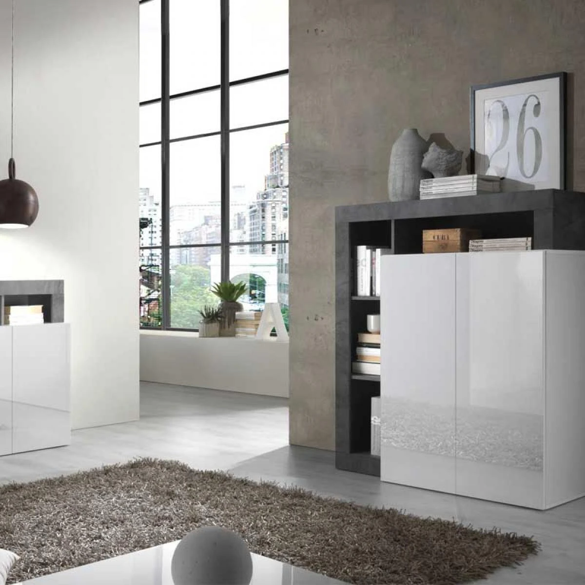 Points forts Tousmesmeubles Meuble d’entrée 2 portes Blanc laqué brillant/Béton ciré foncé – ISCHIA