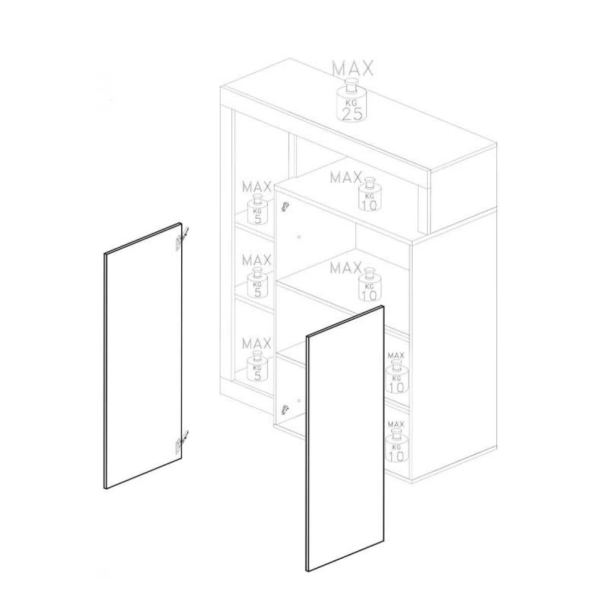 Vous pourrez déposer un grand nombre d’objets sur les 2 étagères porposées derrière les 2 portes, les niches ouvertes seront parfaites pour laisser quelques objets à portée de main ou pour mettre en avant de beaux objets de décoration.