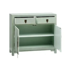 Points forts Tousmesmeubles Meuble d’entrĂ©e 2 tiroirs 2 portes Vert Menthe – SHANGHAI