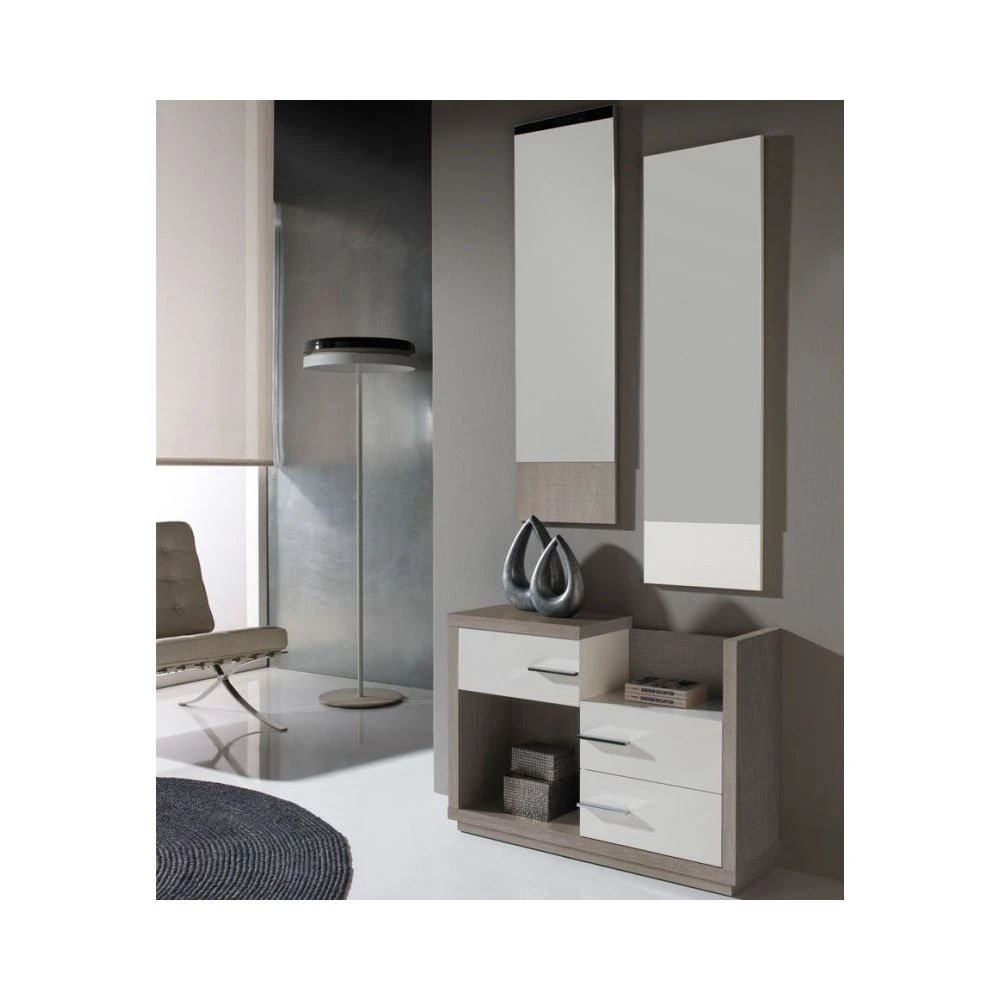 Points forts Tousmesmeubles Meuble d’entrée Blanc/Chêne clair + miroirs – COLBY