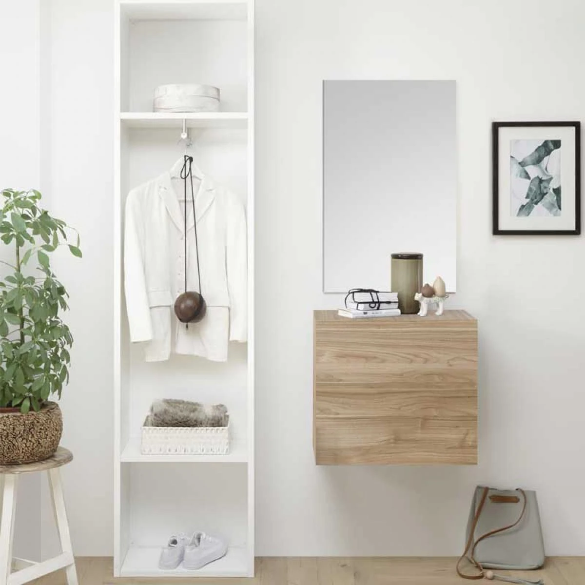 Equipez votre entrĂ©e avec cet ensemble comprenant Meuble d’entrĂ©e + Miroir + Vestiaire.
