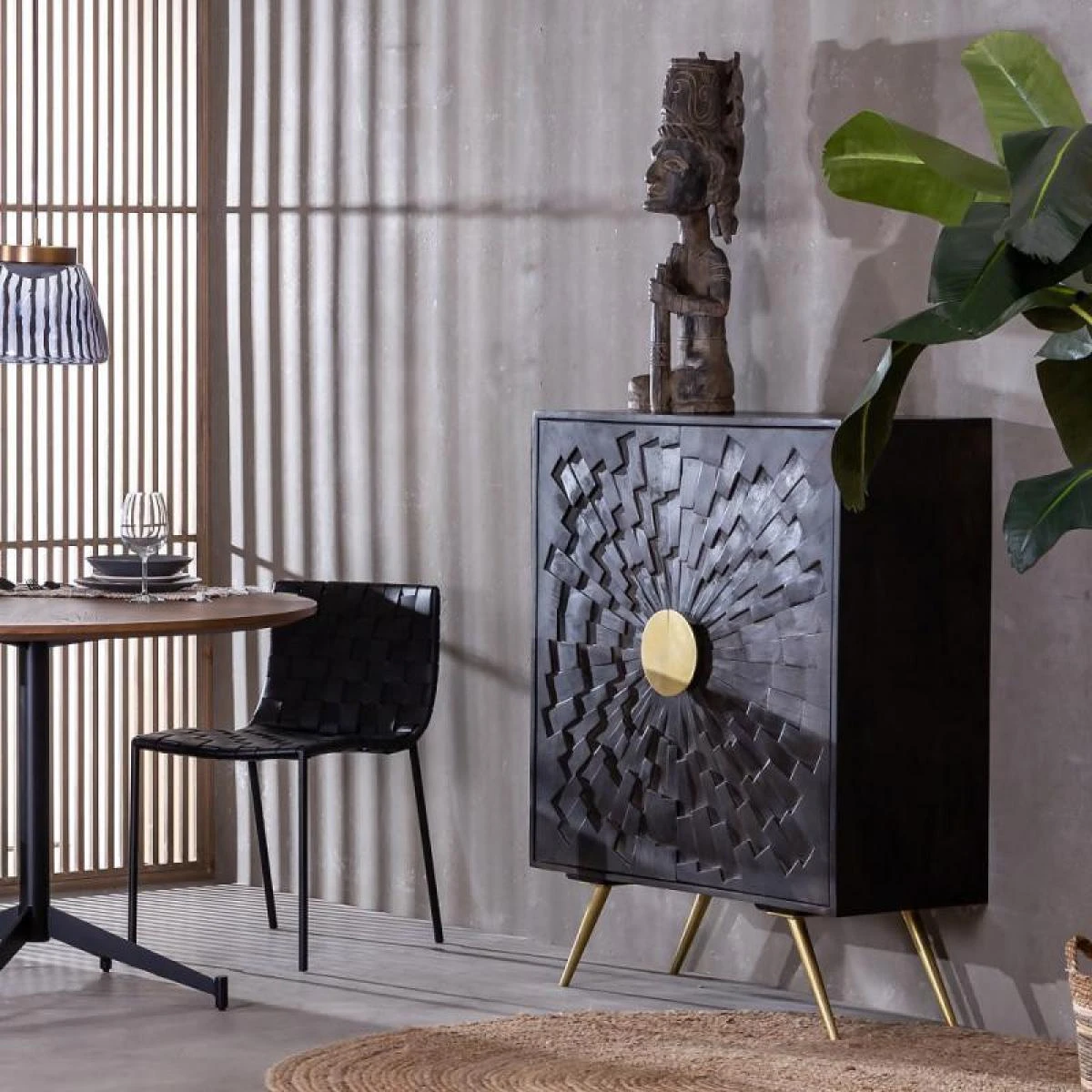 Afin d’apporter de l’originalitĂ© dans votre dĂ©co ce beau meuble de complĂ©ment met en oeuvre un piĂ©tement et des poignĂ©es en mĂ©tal teinte Or, ce matĂ©riau offre aussi une robustesse importante.
